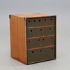 12 cajas. Revestido en piel. Altura 64, anchura 51, profundidad 47 cm.