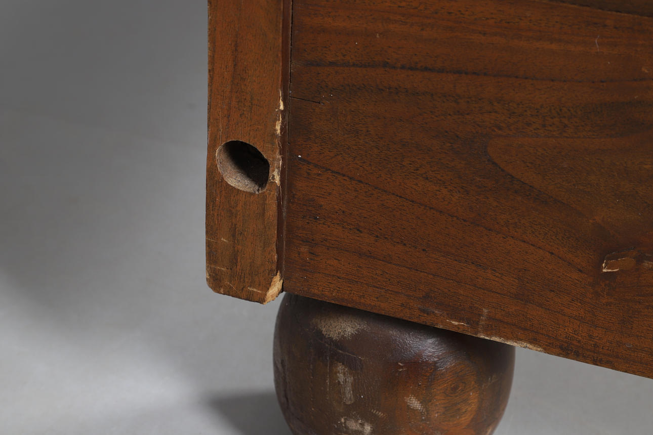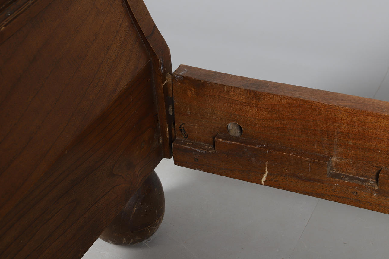 La cabeza del pergamino y las tablas para los pies son de 5 pies y 3 pulgadas sobre patas esféricas.
