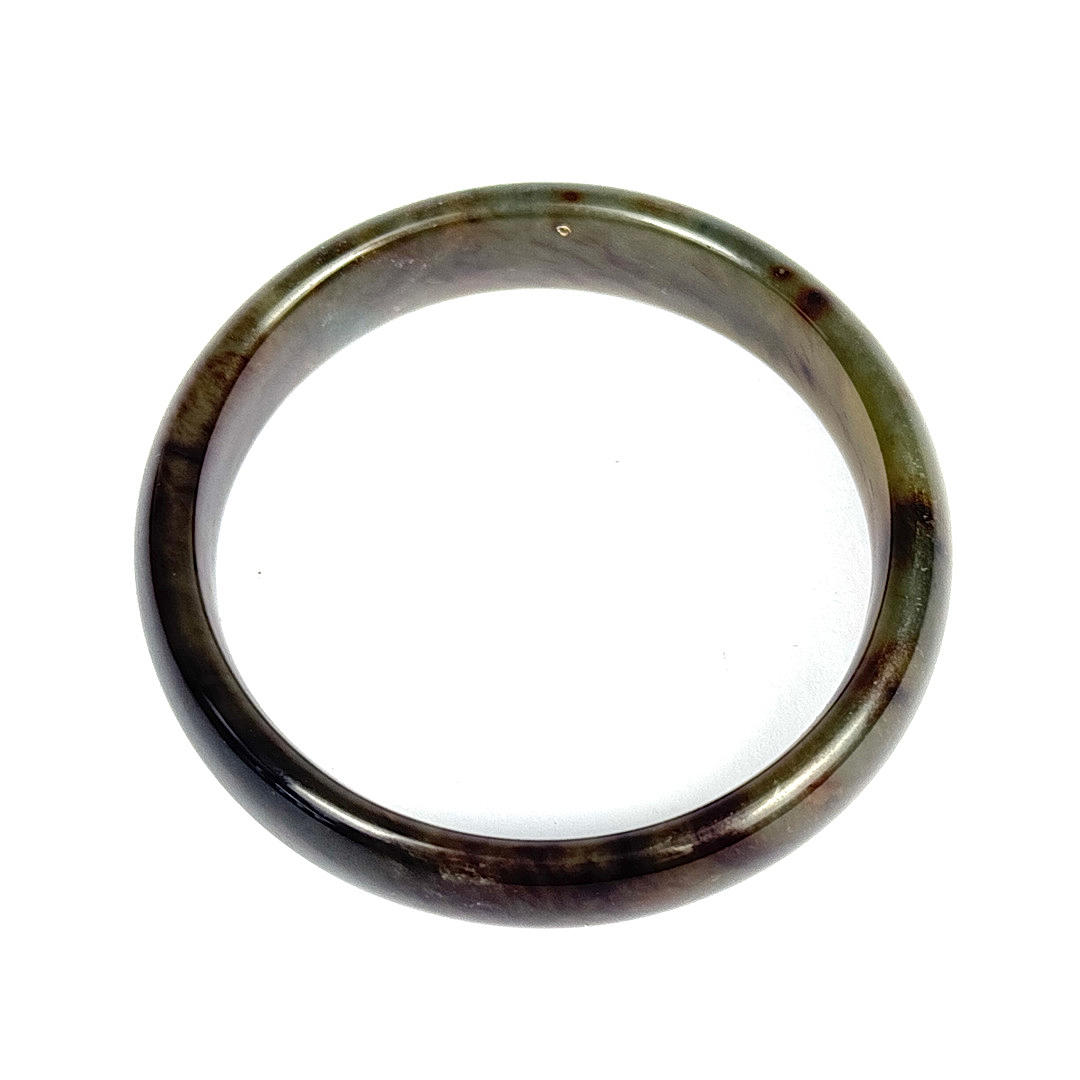 Un brazalete de jade verde oscuro y rojo. Tamaño: 7,3 cm.