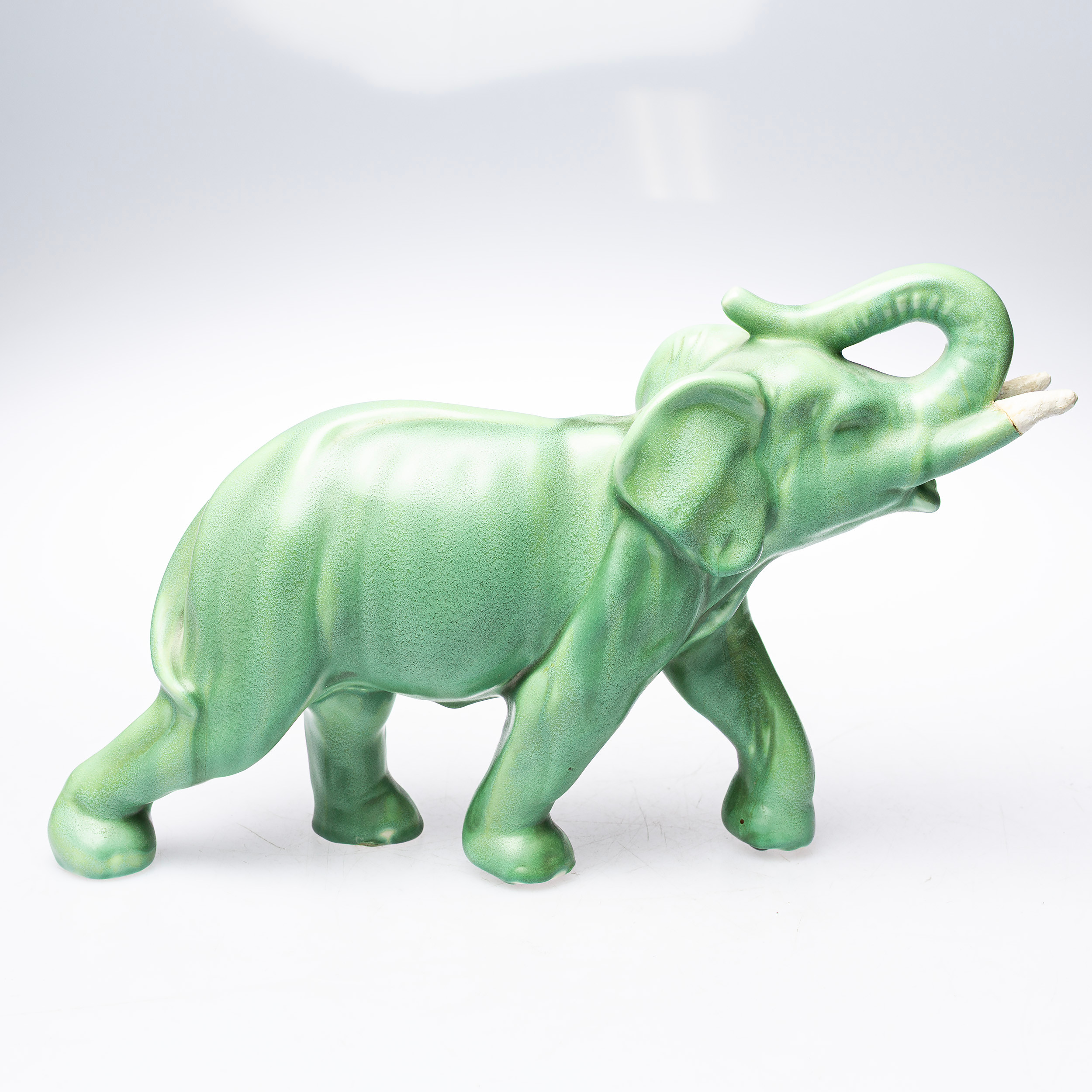 4292343. ELEFANTE, estatuilla, esmaltado en verde.
