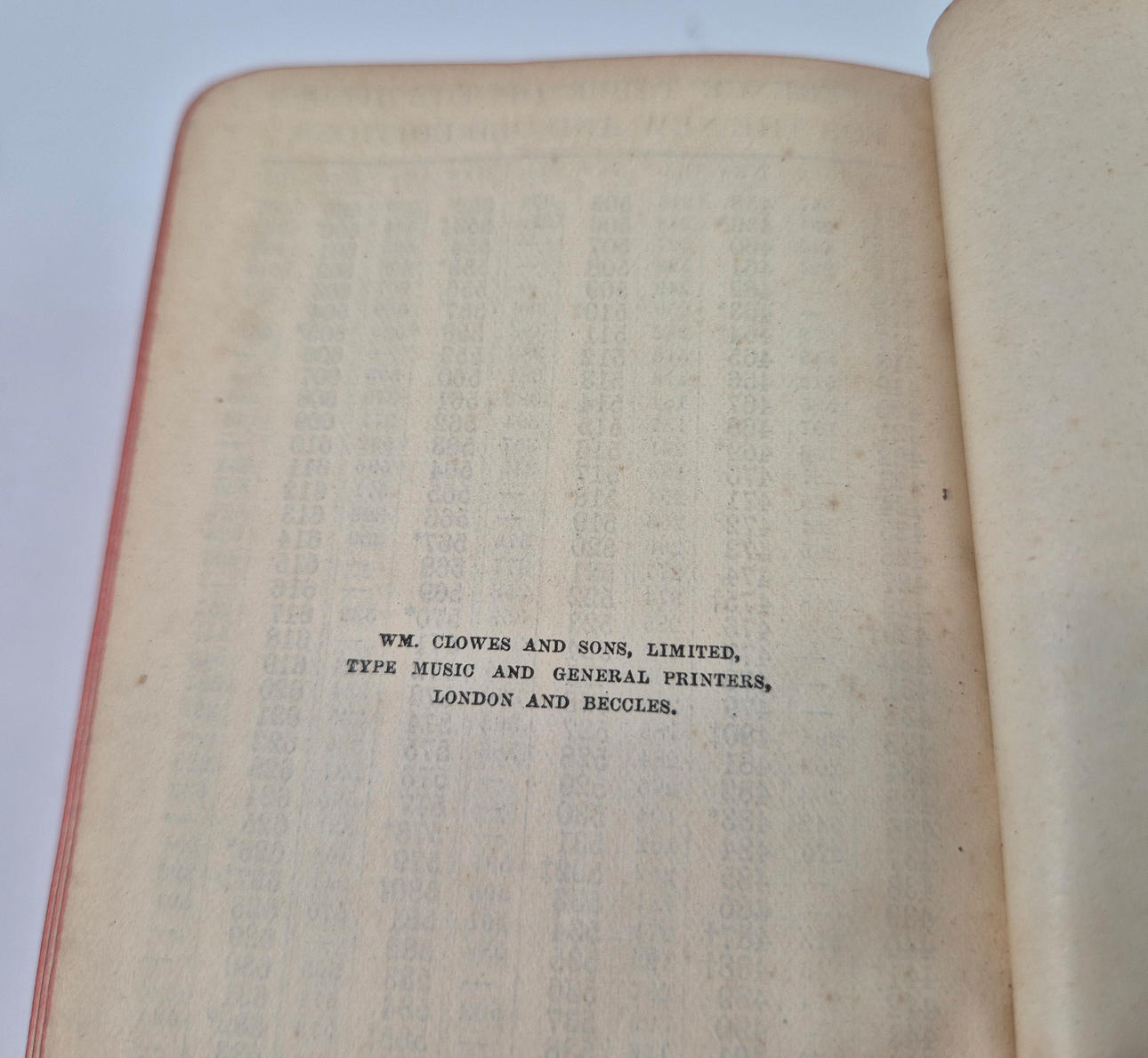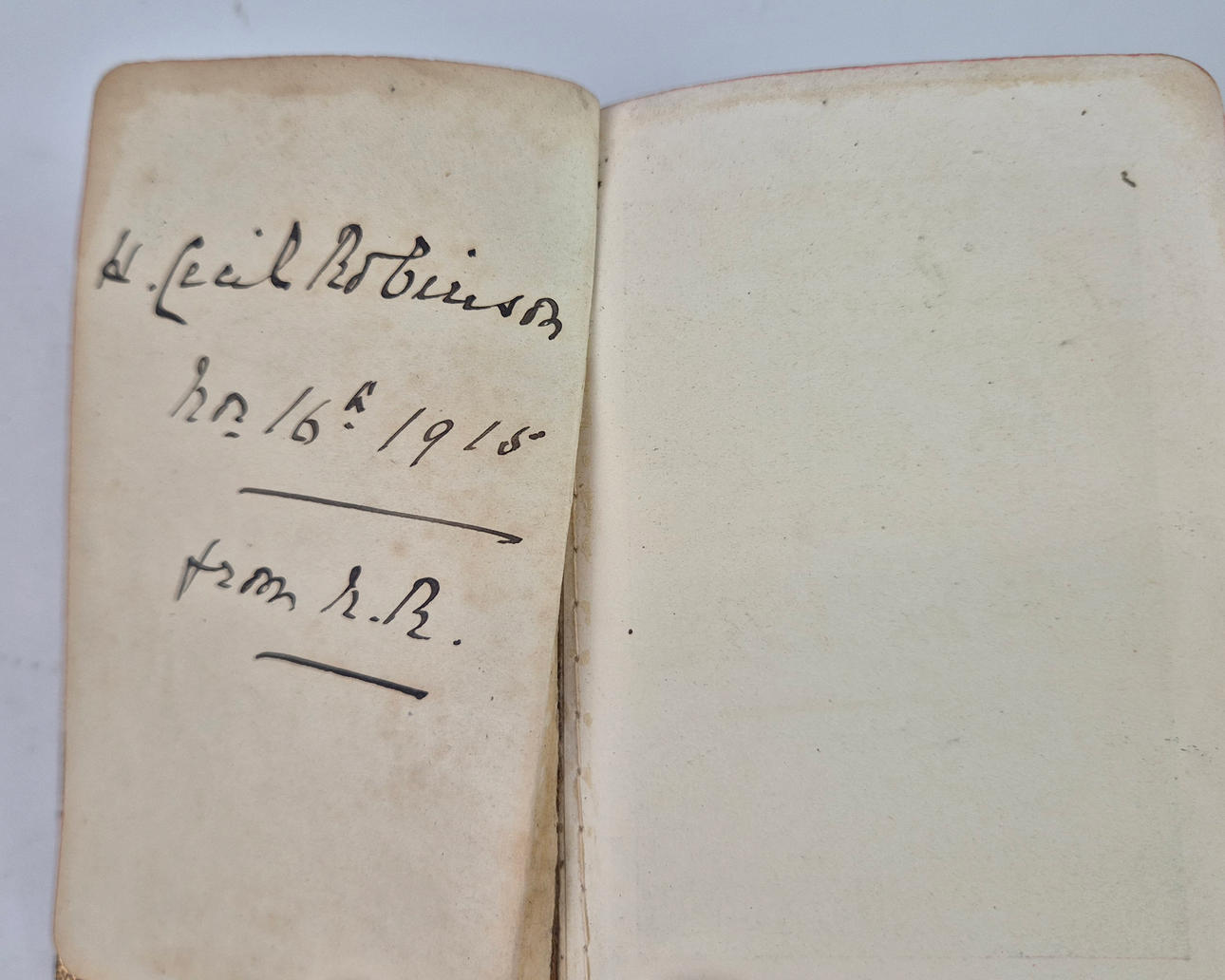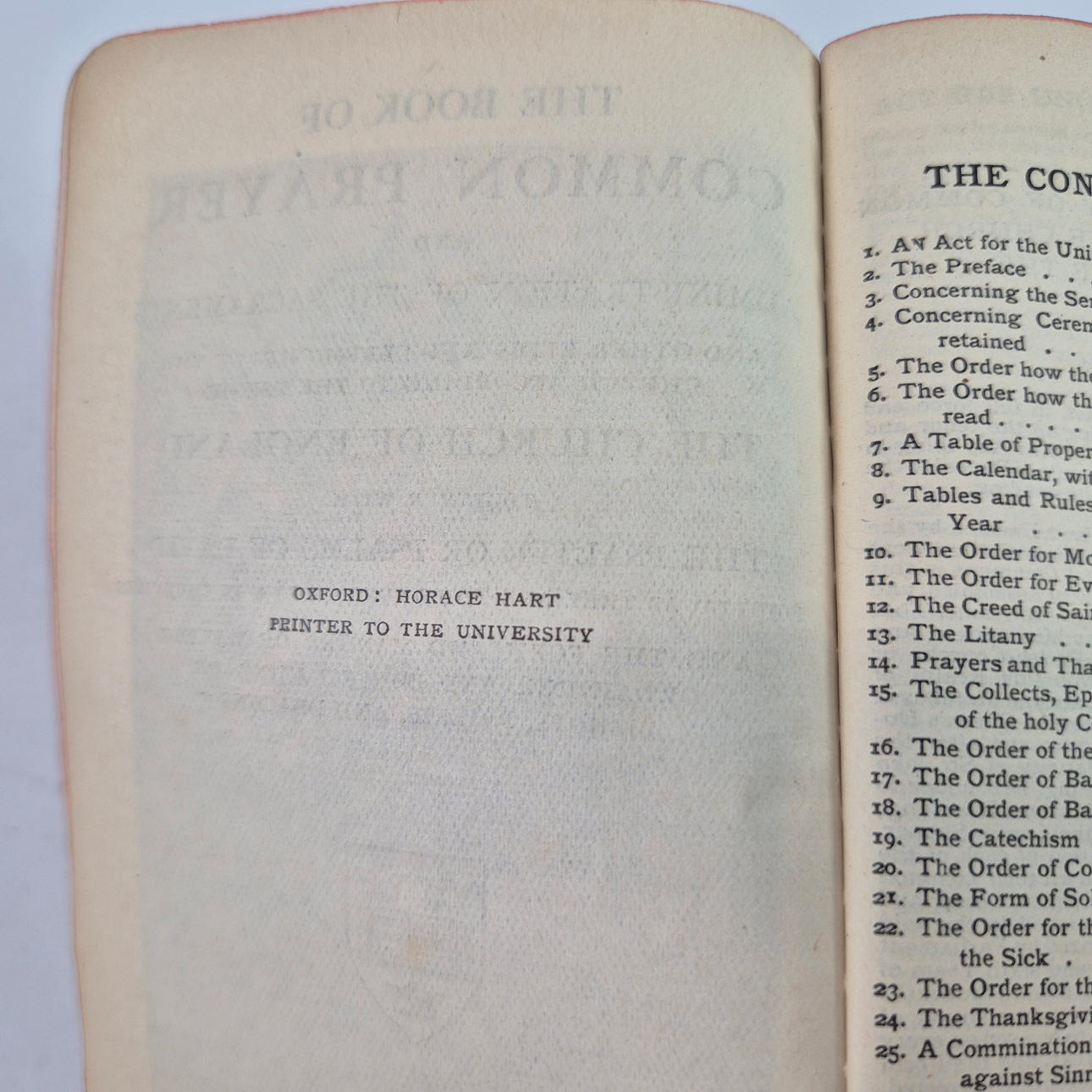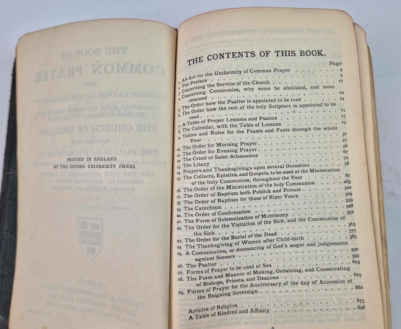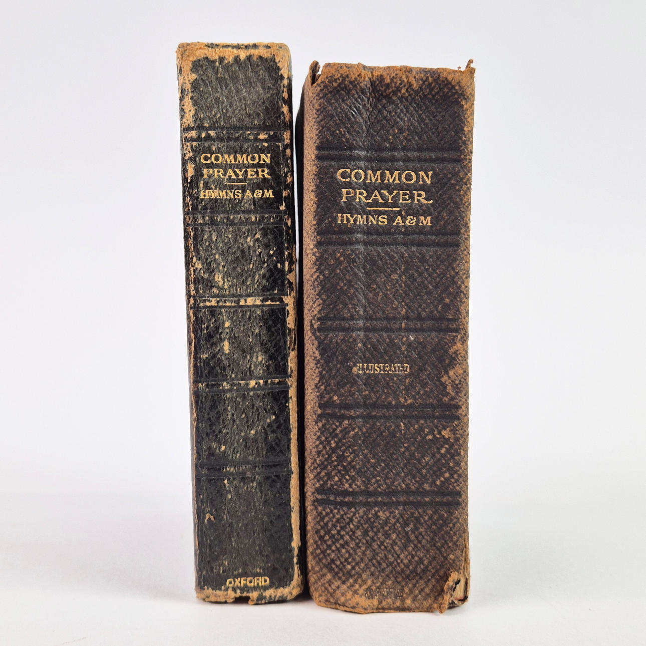 Dos ejemplares del Libro de Oración Común, alrededor de 1920. Encuadernado en piel con letras doradas en el lomo. Bordes dorados. Uno con láminas de colores ilustradas.