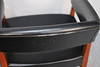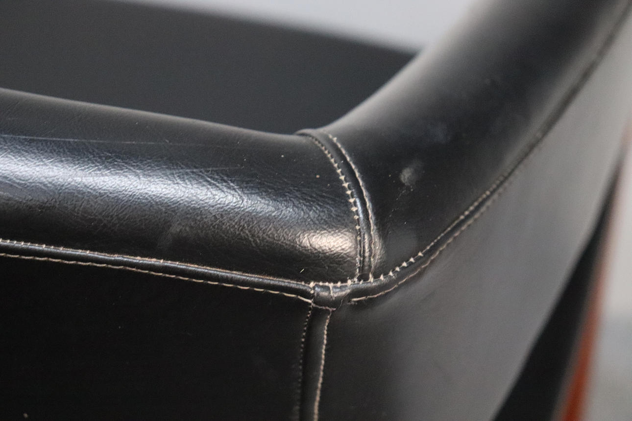 Tapicería en piel sintética negra. Altura 70 cm. ancho 55 cm, profundidad 60 cm.