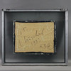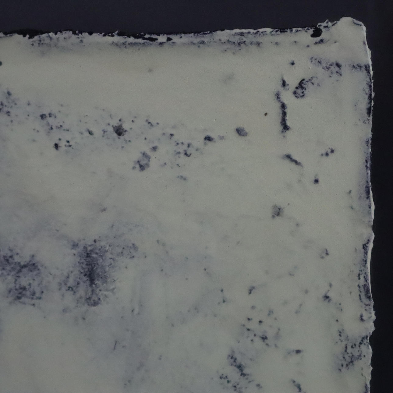 técnica mixta (azufre/ceniza/acrílico sobre techo industrial con panel de madera), firmada, fechada y «O.T.«marcado, dimensiones aproximadas 36,5 x 45 cm, enmarcado en un marco de hierro con acristalamiento de doble cara, dimensiones totales aproximadas 59,5 x 70 cm,