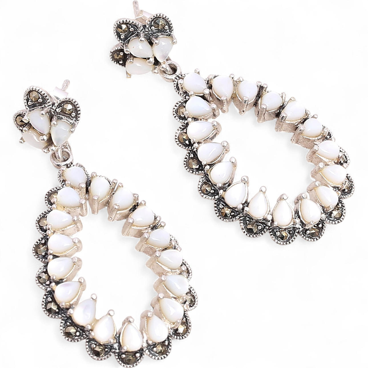 Plata, marcasitas y nácar. 4,8 cm. 15,5 gr.