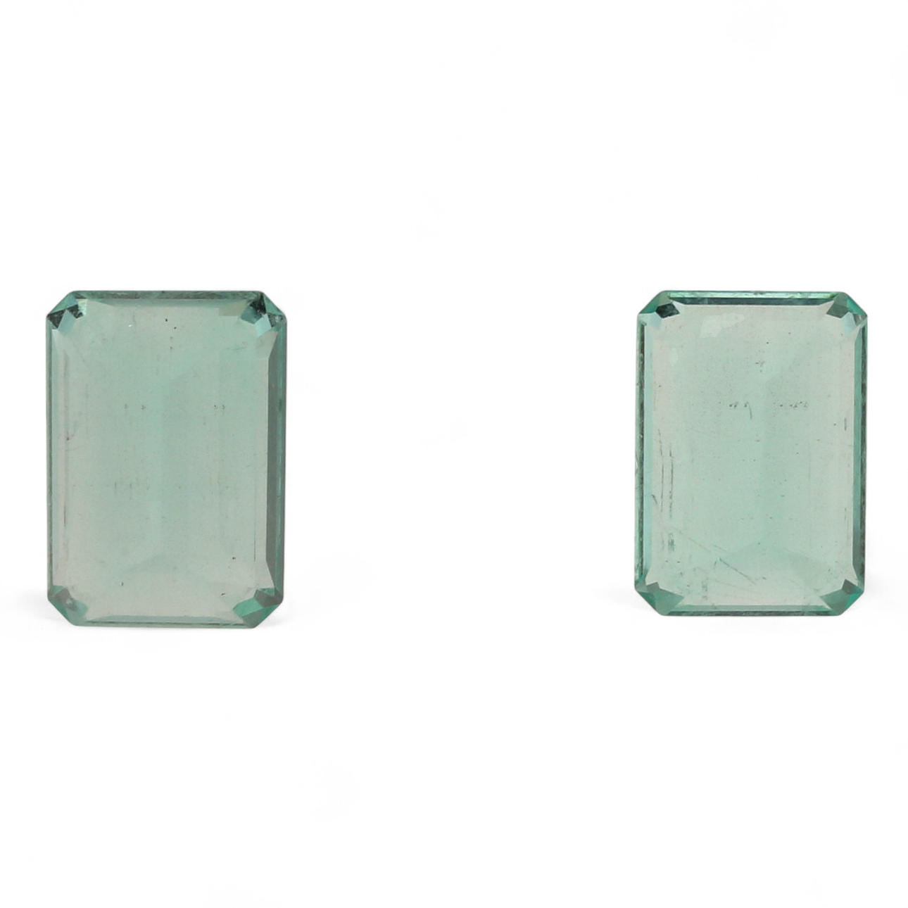 Esmeraldas, talla octogonal de 5,41 cts. 10,4 x 7,3 x 5,7 mm y 10 x 7,1 x 4,9 mm.