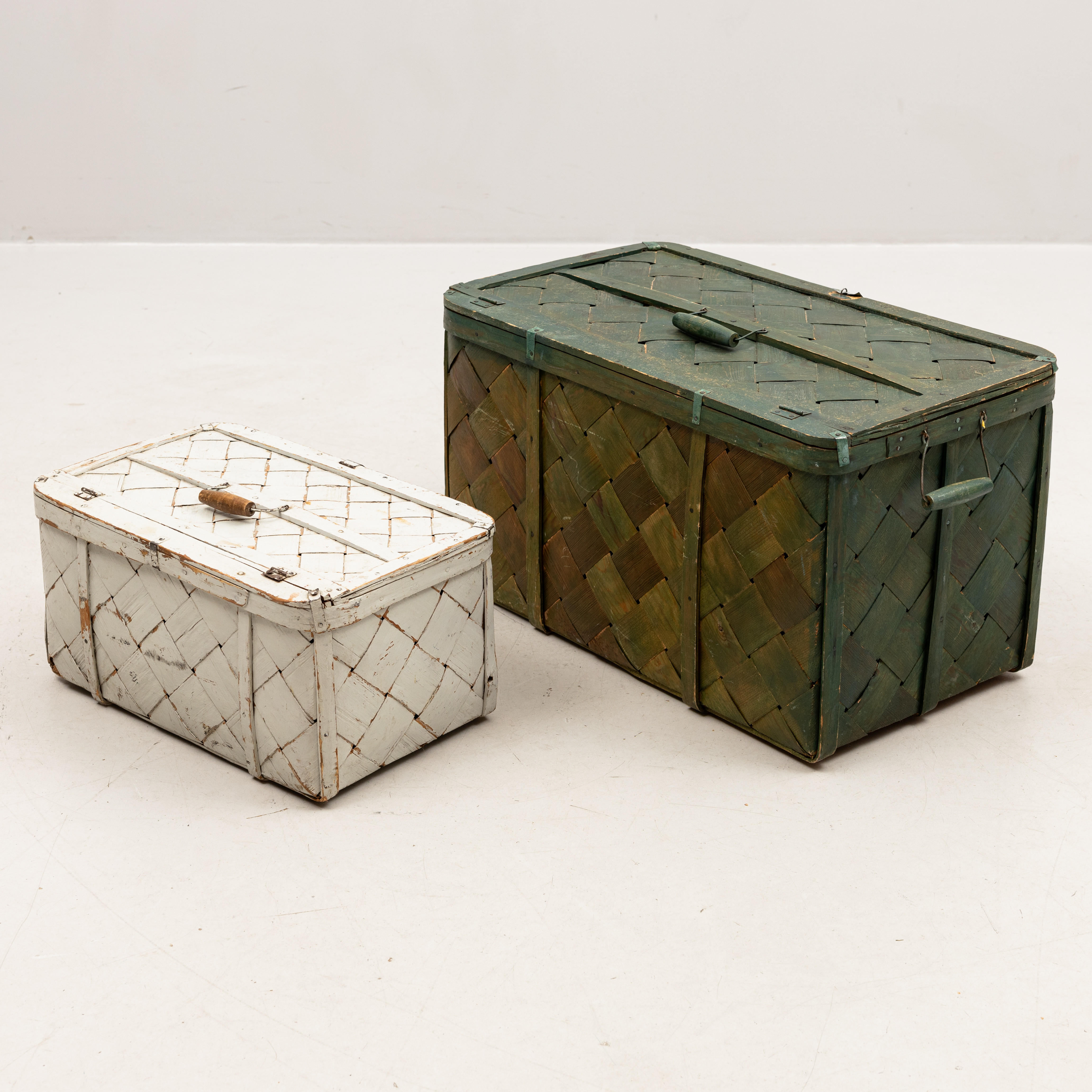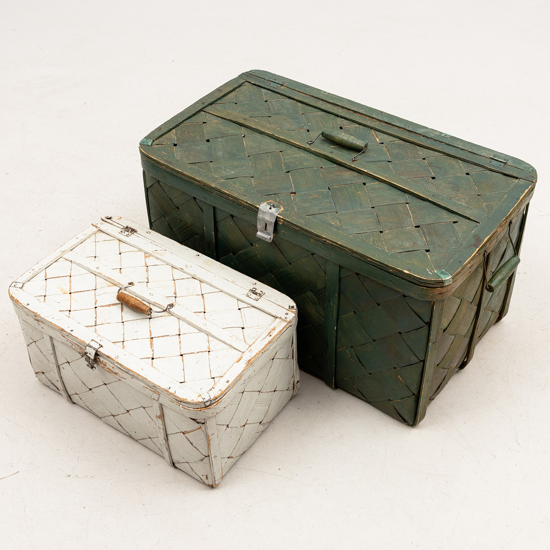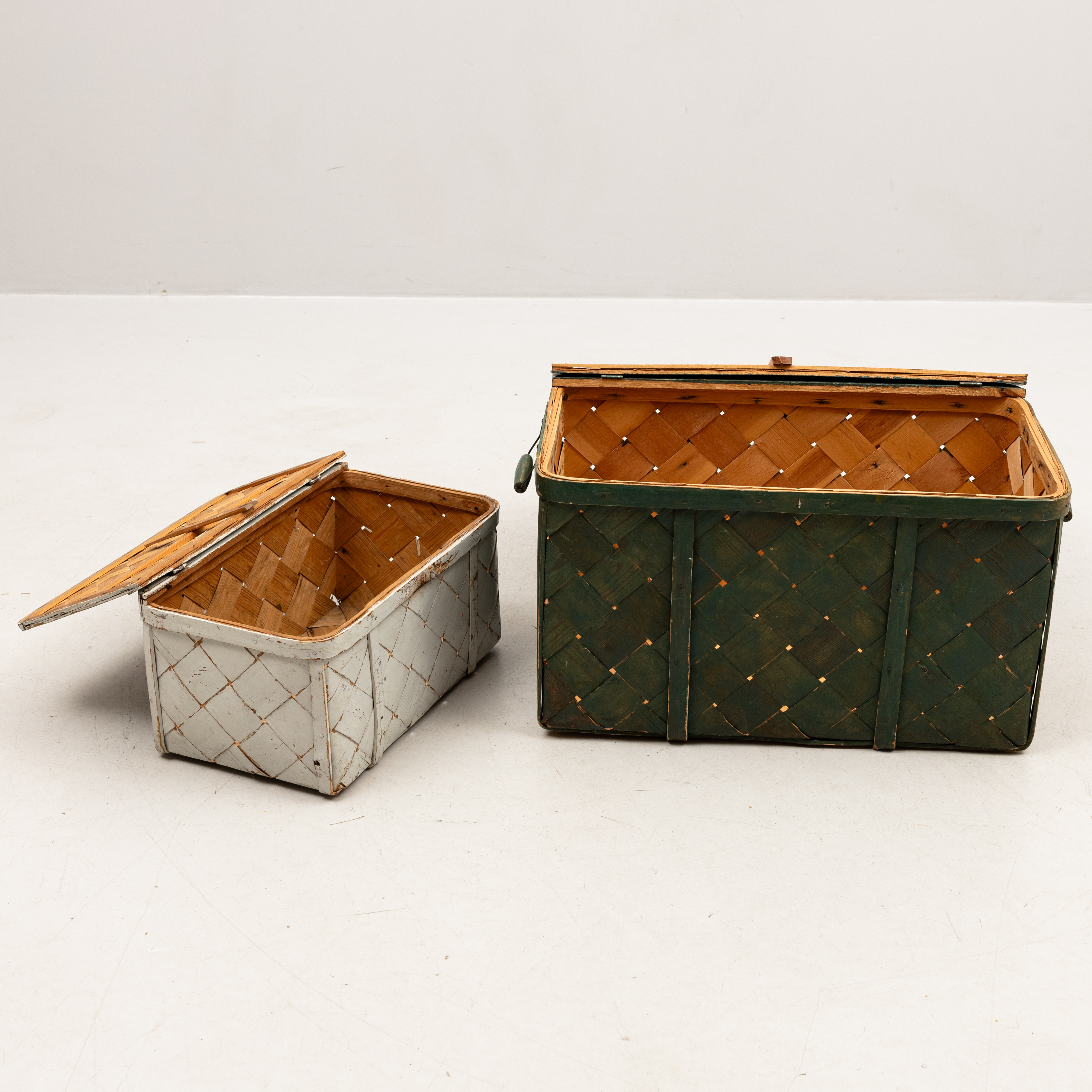 4303303. Un juego de dos cestas de madera aglomerada pintadas, de mediados del siglo XX.