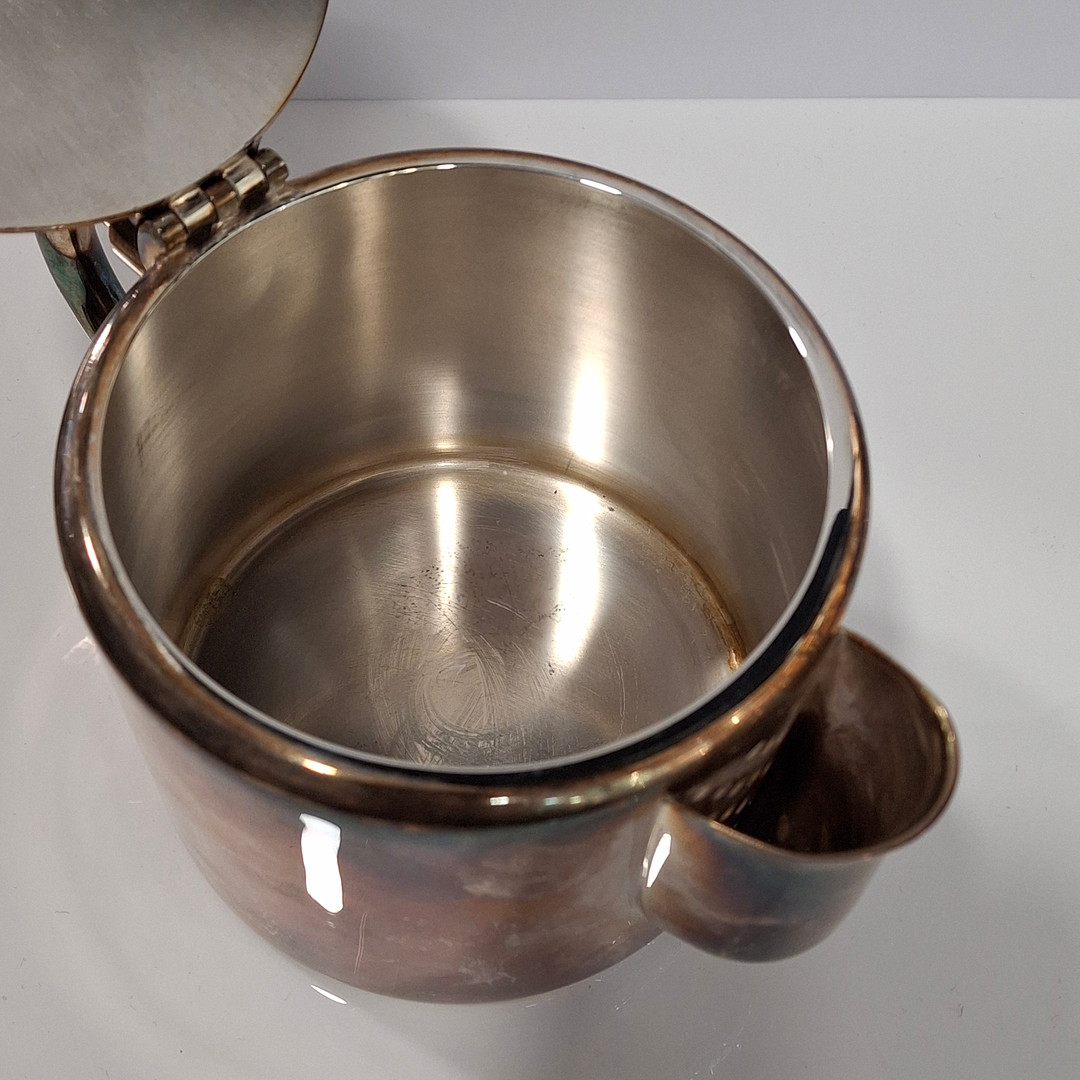 4312585. CHRISTOFLE. Tetera en alpaca plateada.