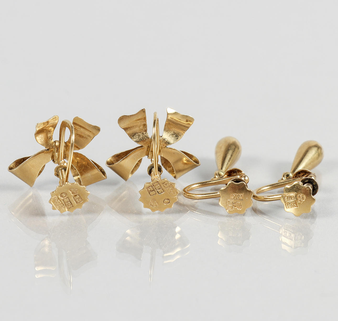 Un par en forma de gota y un par en forma de lazos.