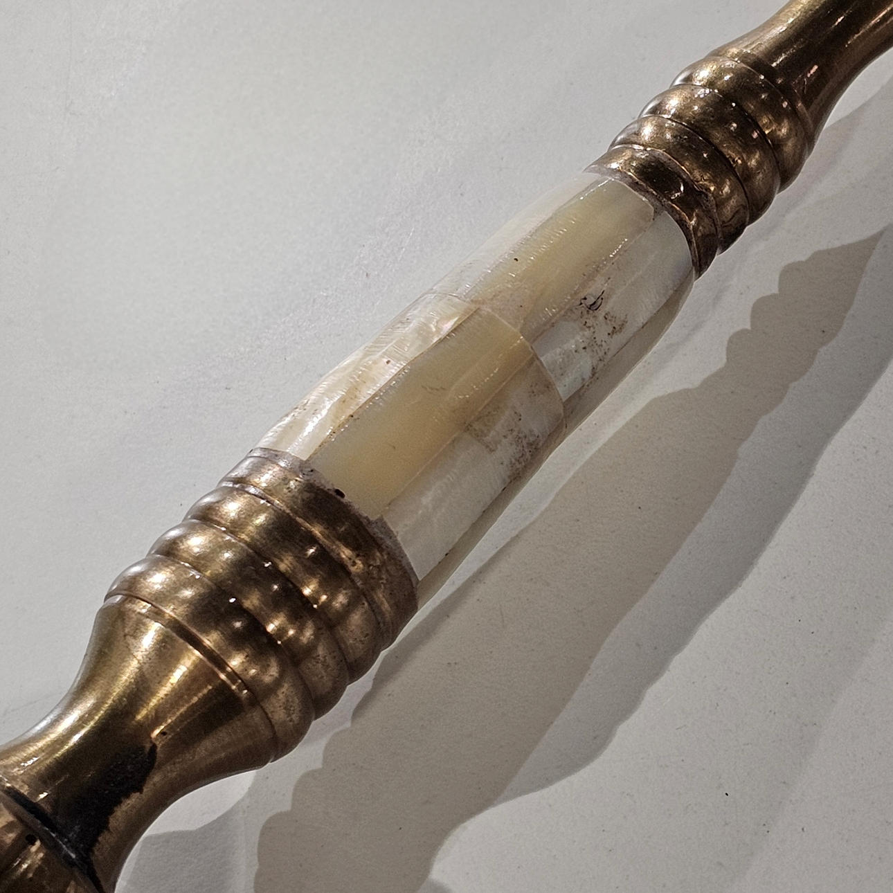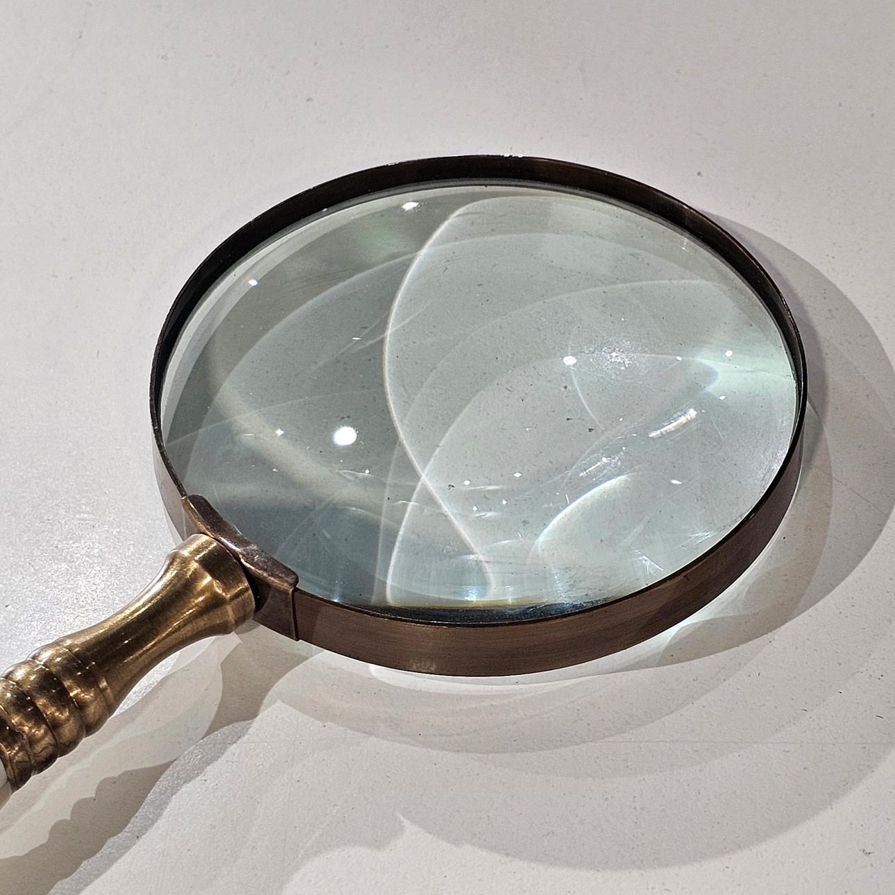 Lupa en metal y nácar.