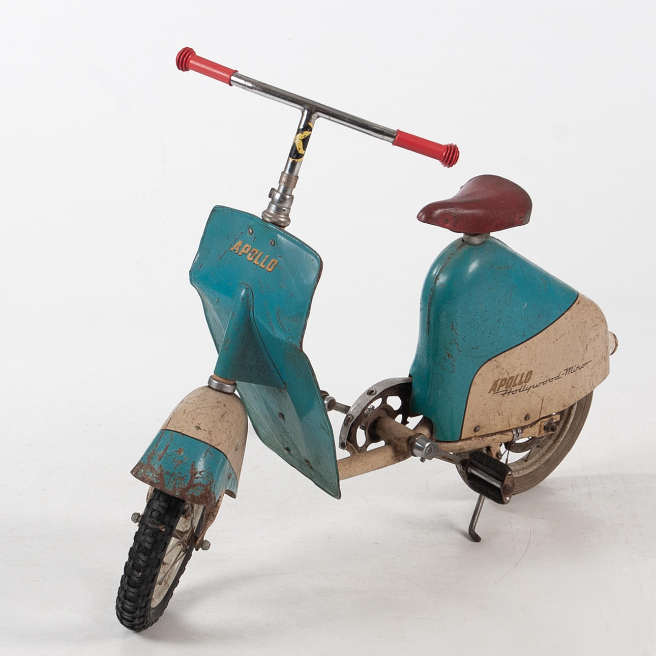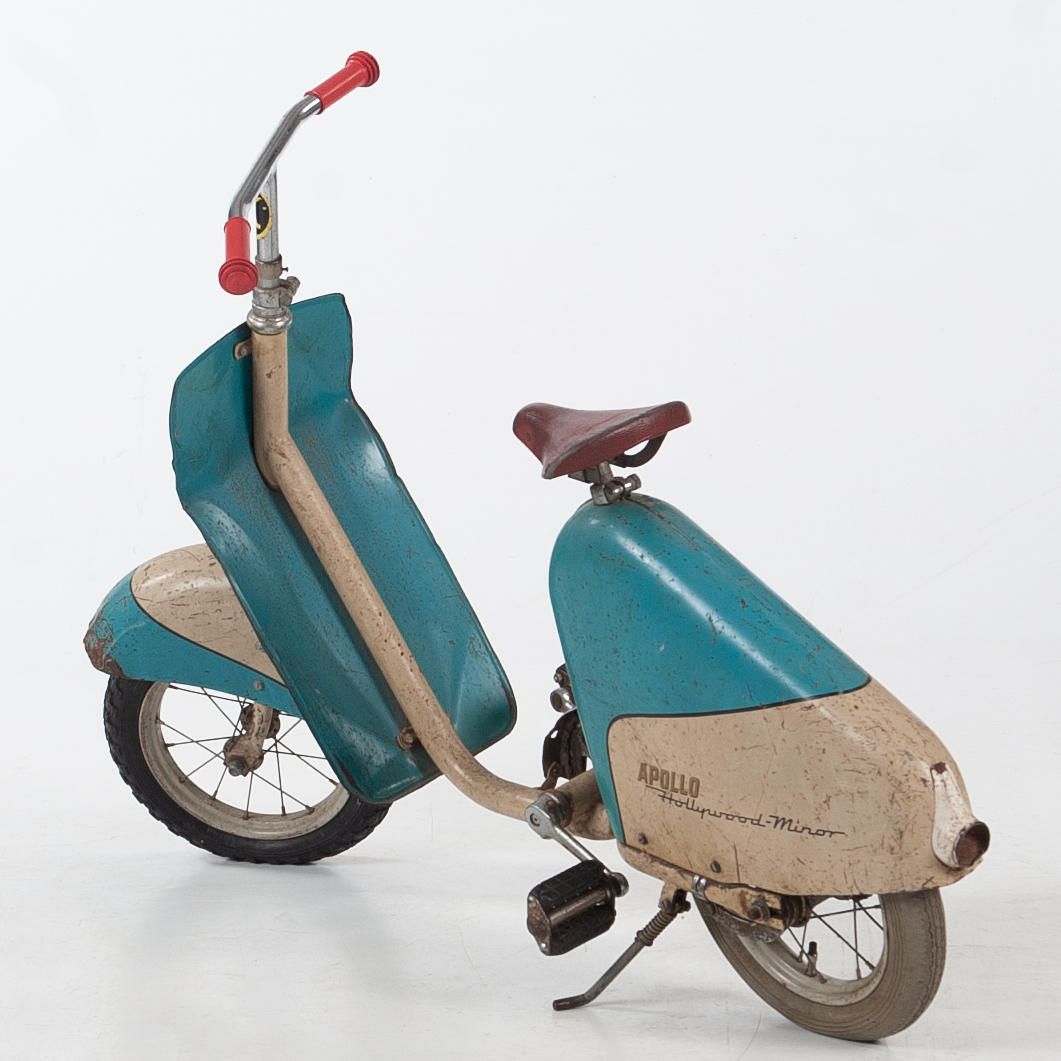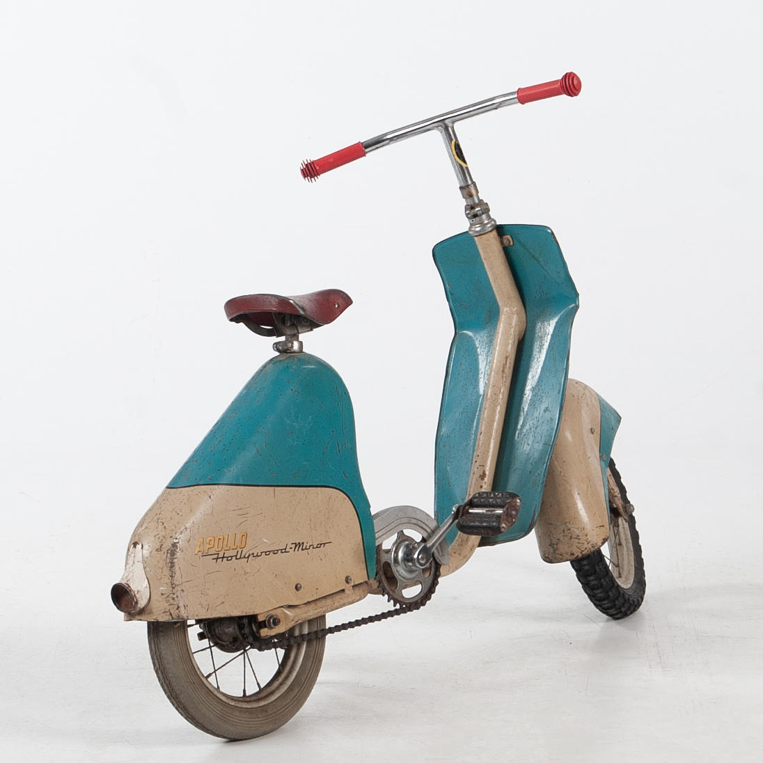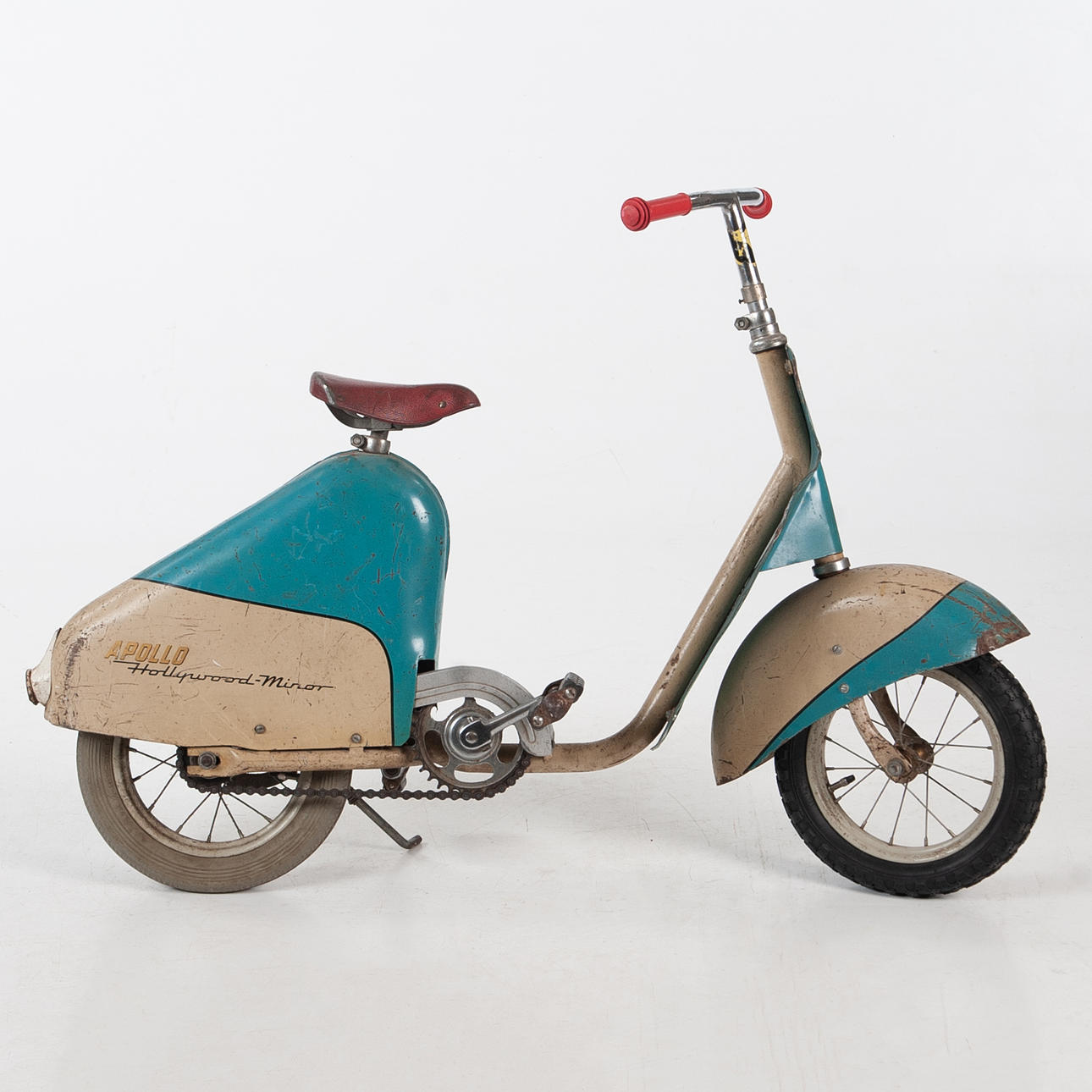 Modelo de scooter para niños, introducido en 1957. Fabricado por M.Berlin & co AB, Värnamo. La bicicleta está equipada con cubo de rueda libre y freno con tapas en chapa lacada. ,. (Altura 79, longitud 105).