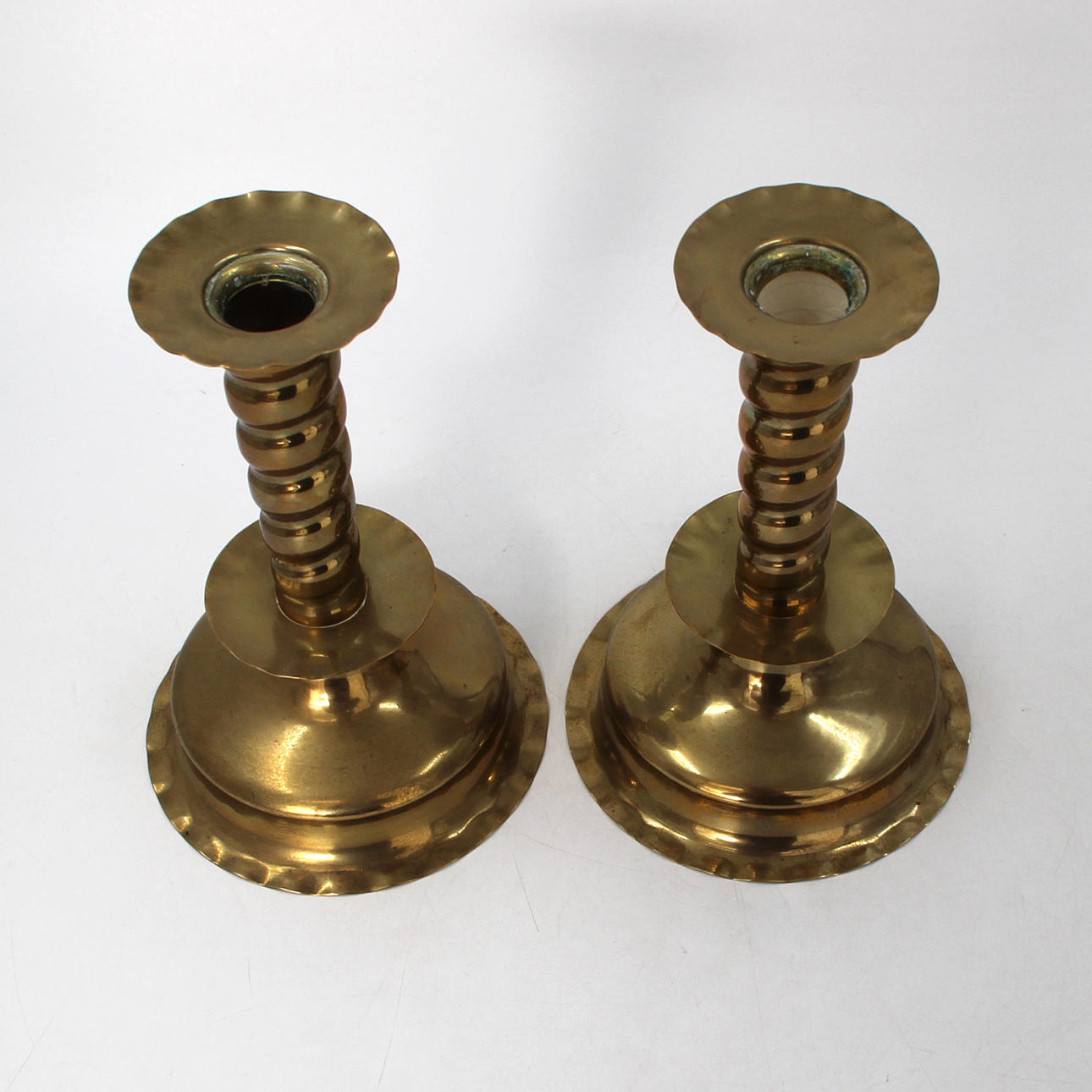 4321087. PAR DE CANDELABROS, LATÓN ESTAMPADO.