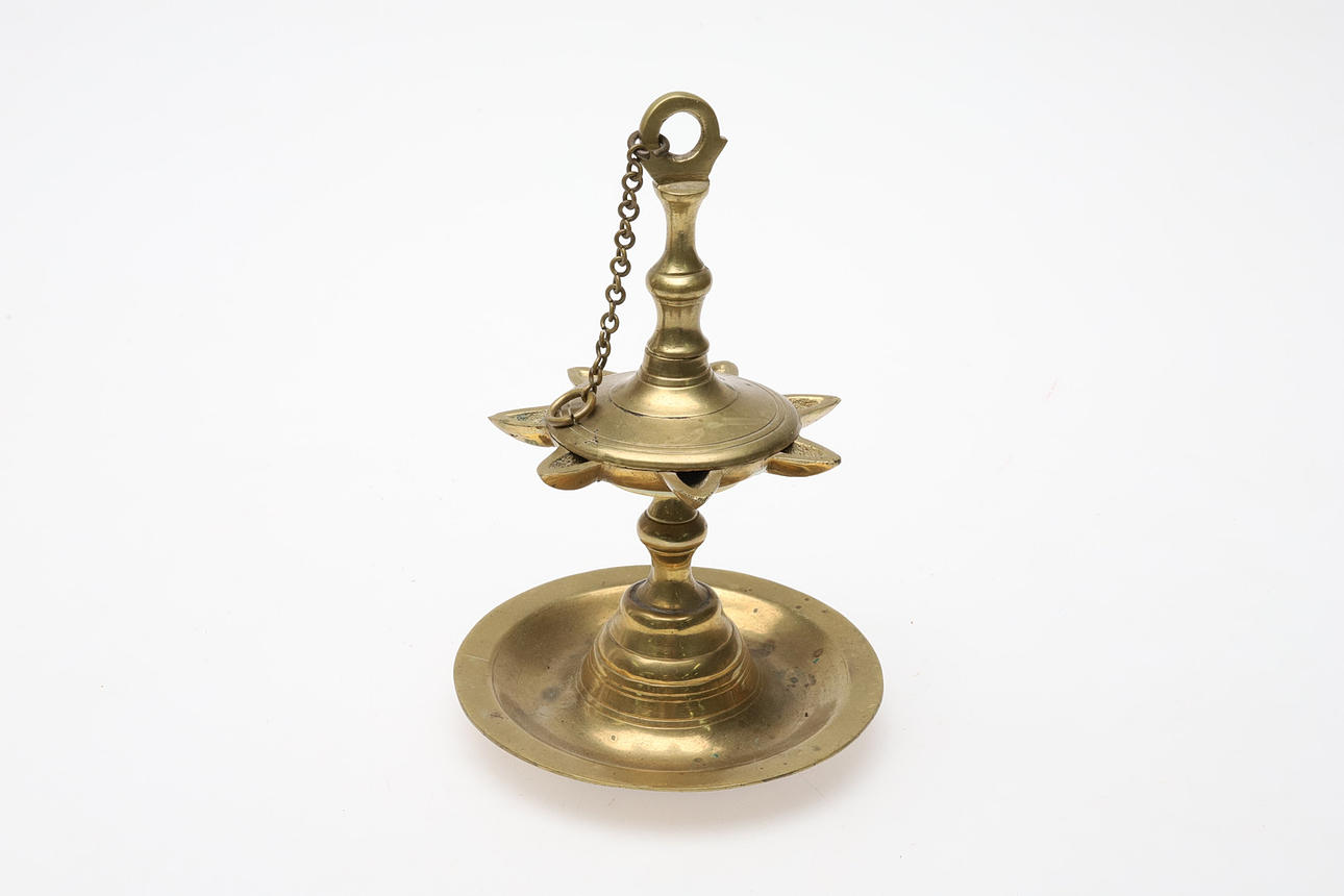 LÁMPARA DE ACEITE NEPALÍ DE LATÓN.