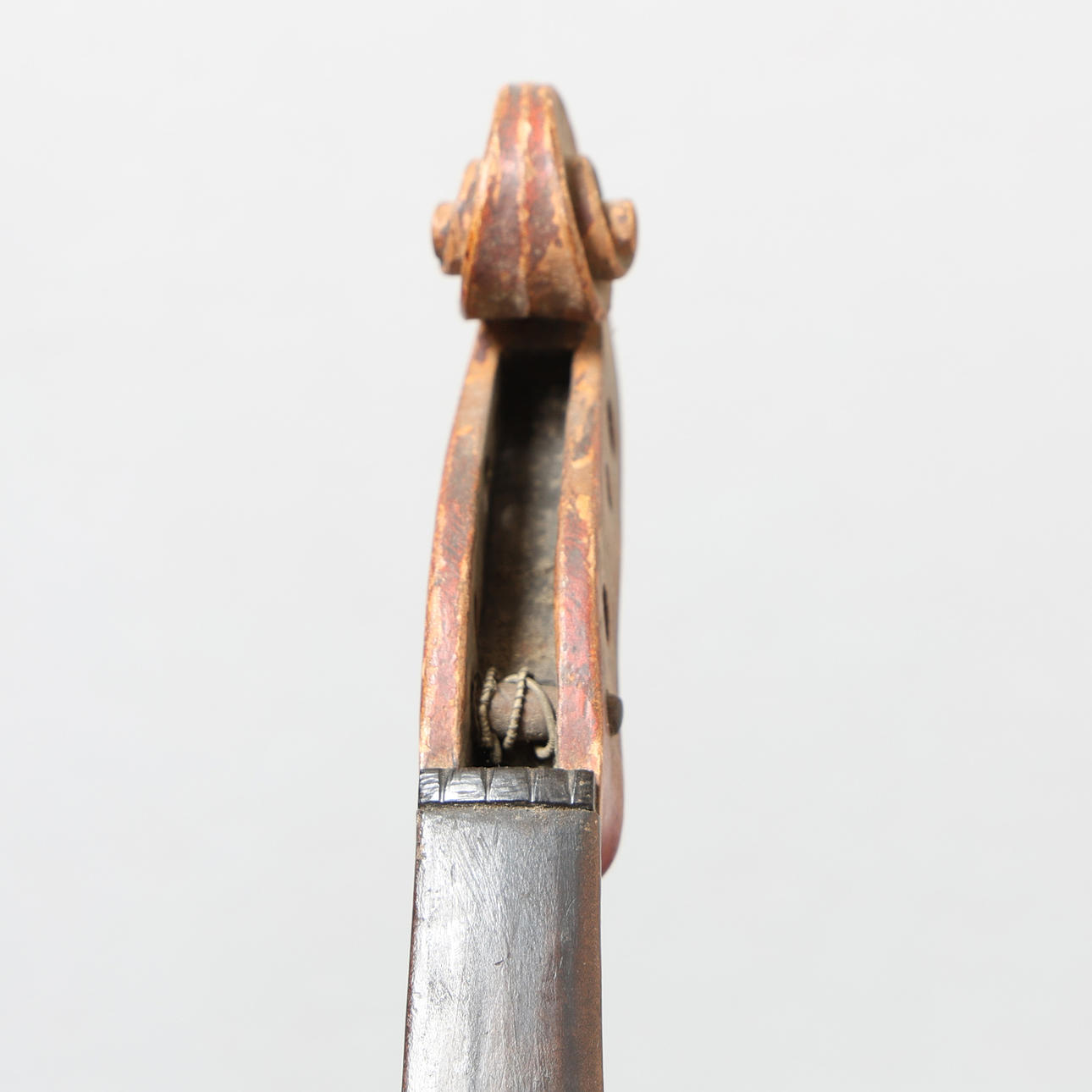 Con desgaste y rozaduras en todas partes, marcas y hendiduras ocasionales, sin clavijas de afinación, cuerdas, puente, cordal y mentonera.