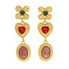 Metal sobredorado, vidrio multicolor y camafeos. Pendientes: 1,7 x 6,5 cm. Gargantilla: 43 cm (ajustable a 39 cm). 67,6 gr.