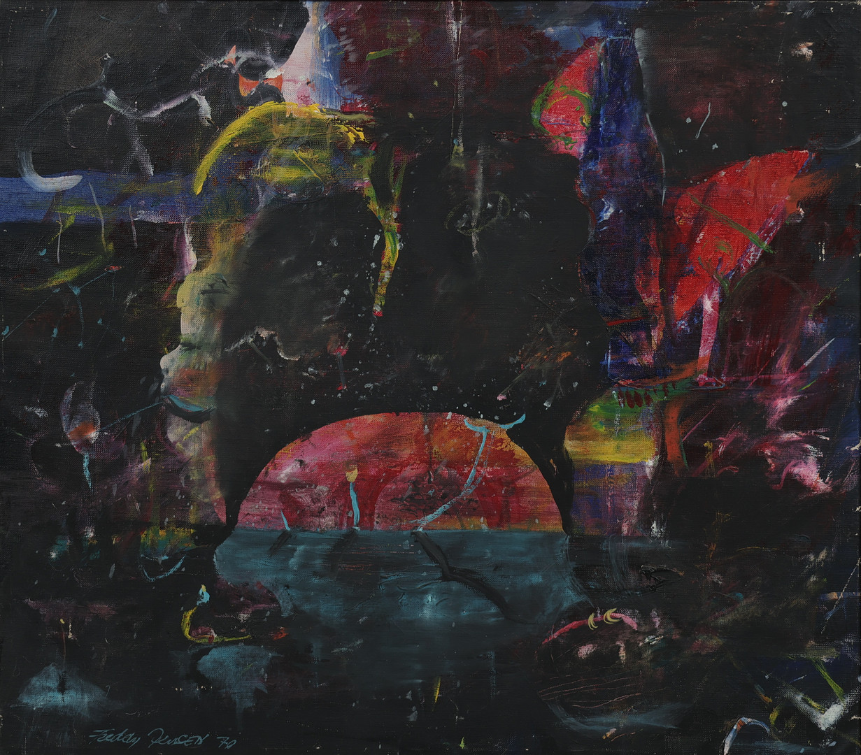 4328558. FREDDY JENSEN (1944-2018). Composición óleo sobre lienzo 'Sun'.