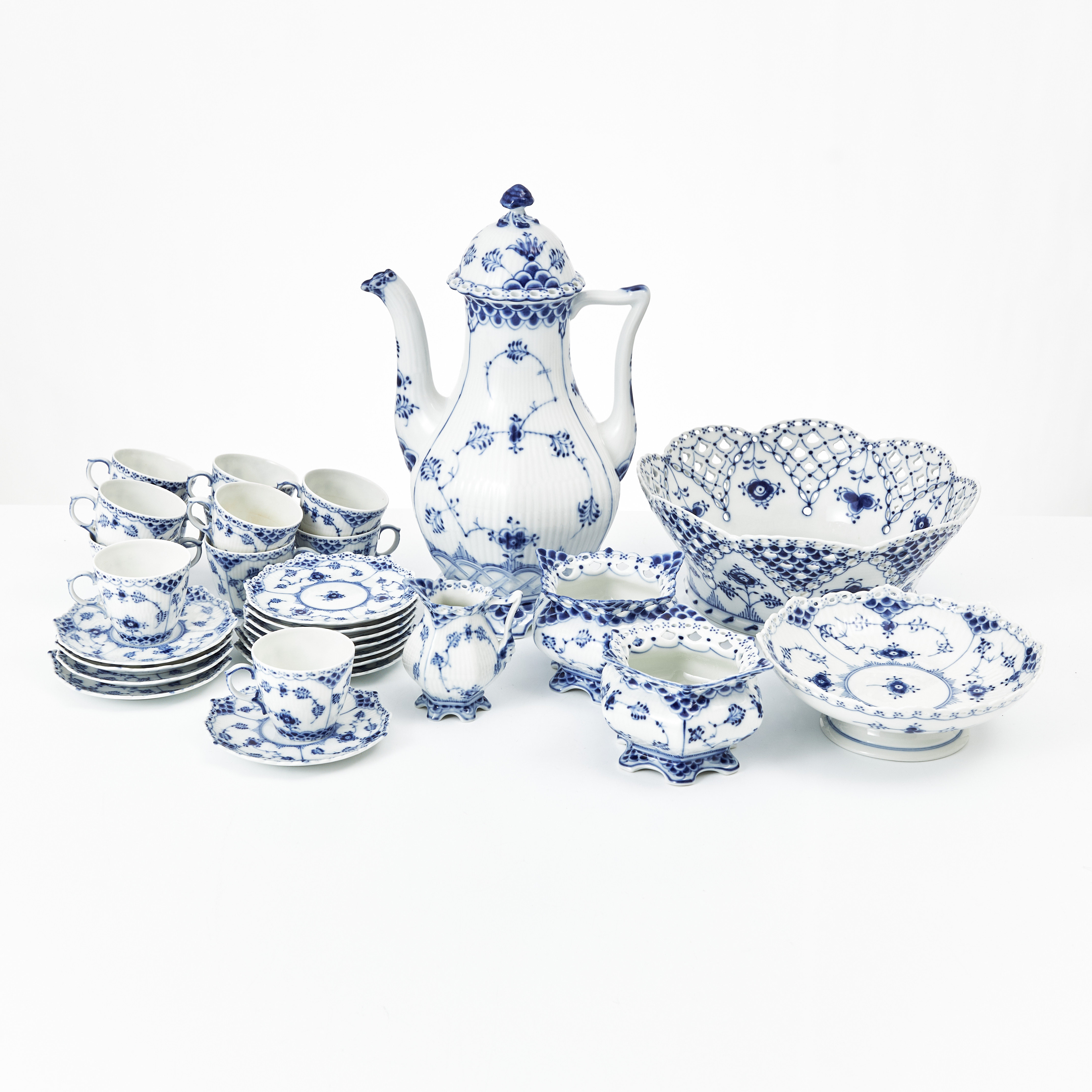 4330111. ROYAL COPENHAGEN. Vajilla, «Musselmalet», rubia completa.