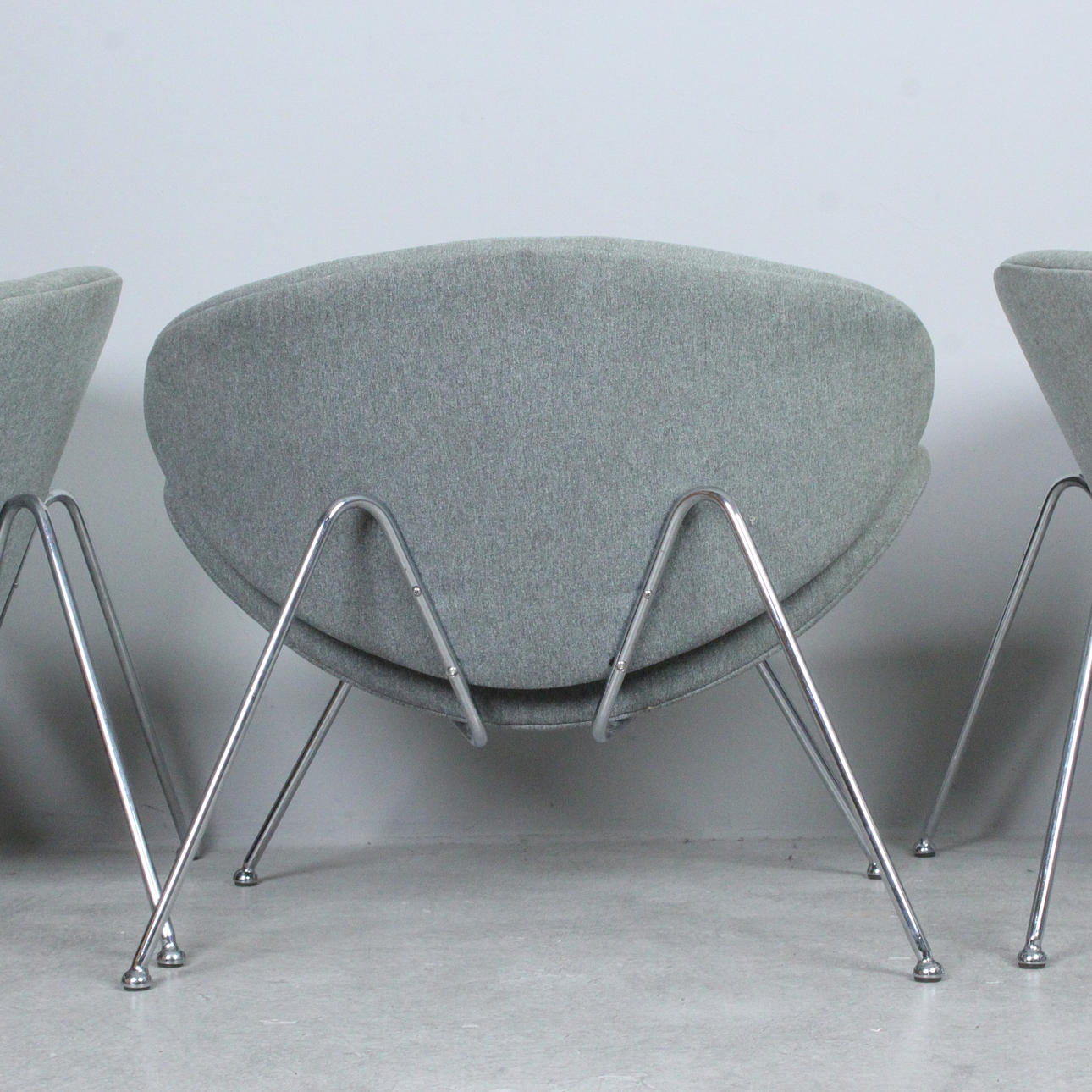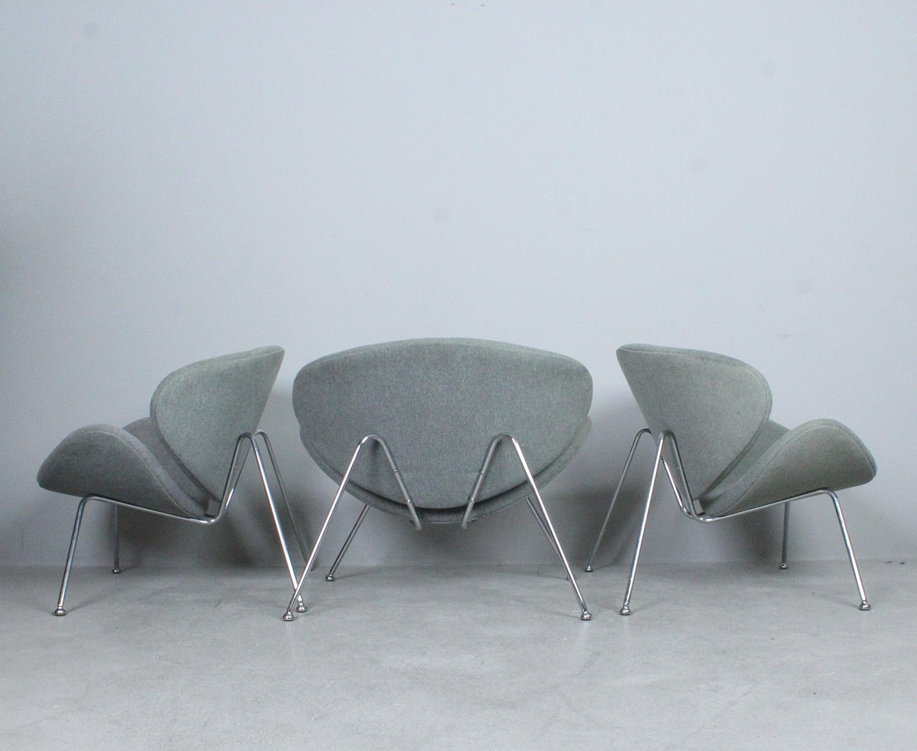 Tres sillones de la década de 1990, hechos de metal y tela,