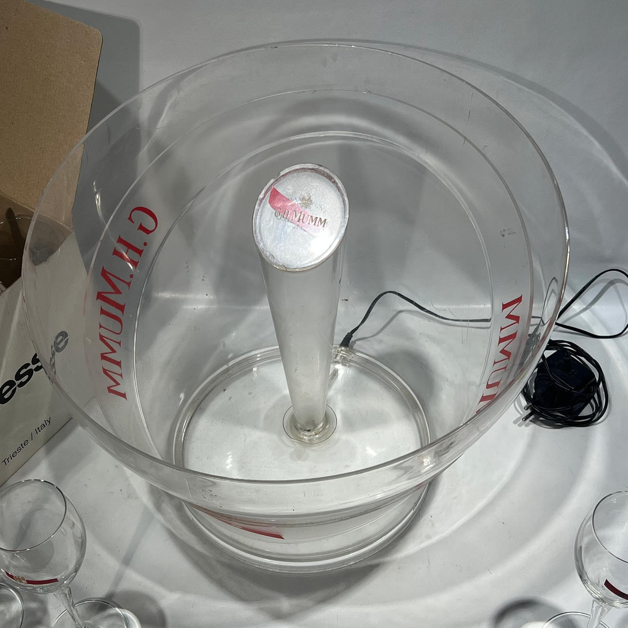 Champagnera G.H. MUMM con doce copas en cristal.