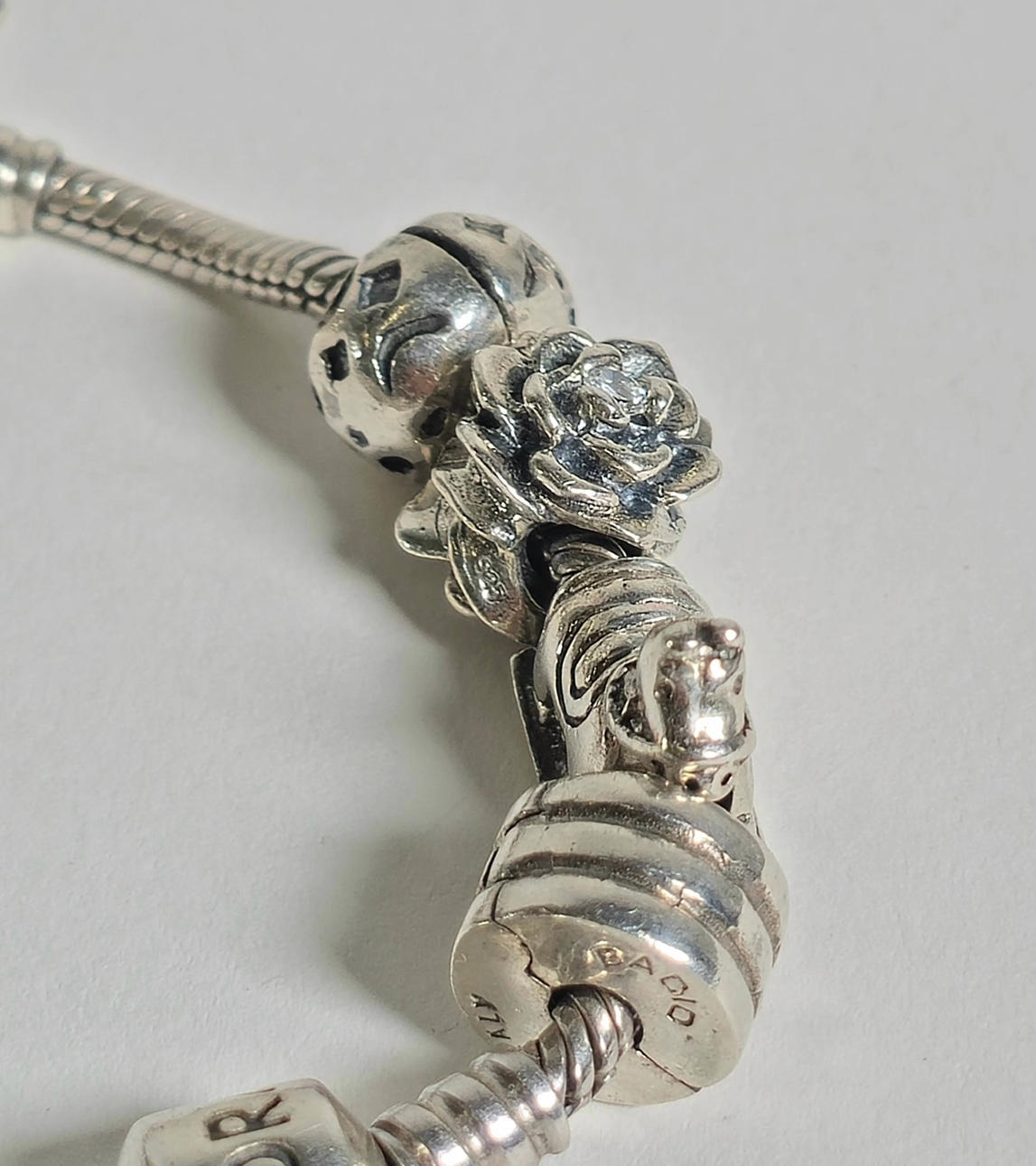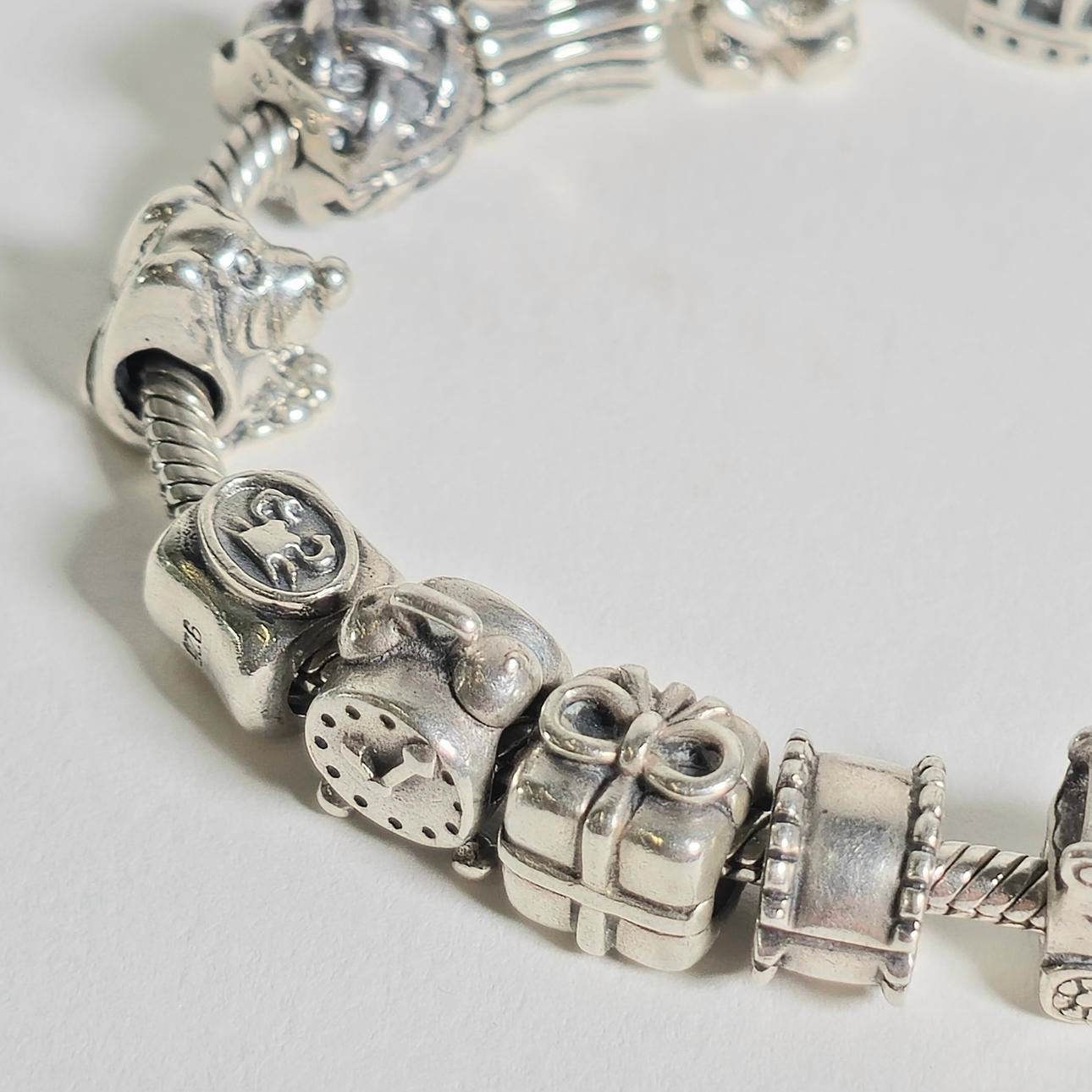 PULSERA ESTILO PANDORA EN PLATA CON 14 CHARMS.