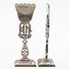 2 tarjeteros de menú de metal con el monograma de Oscar II. Dimensiones: 12 x 4 cm