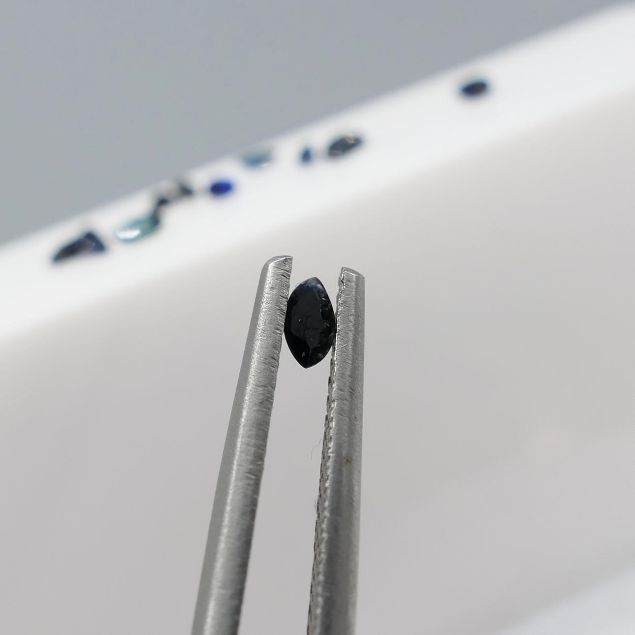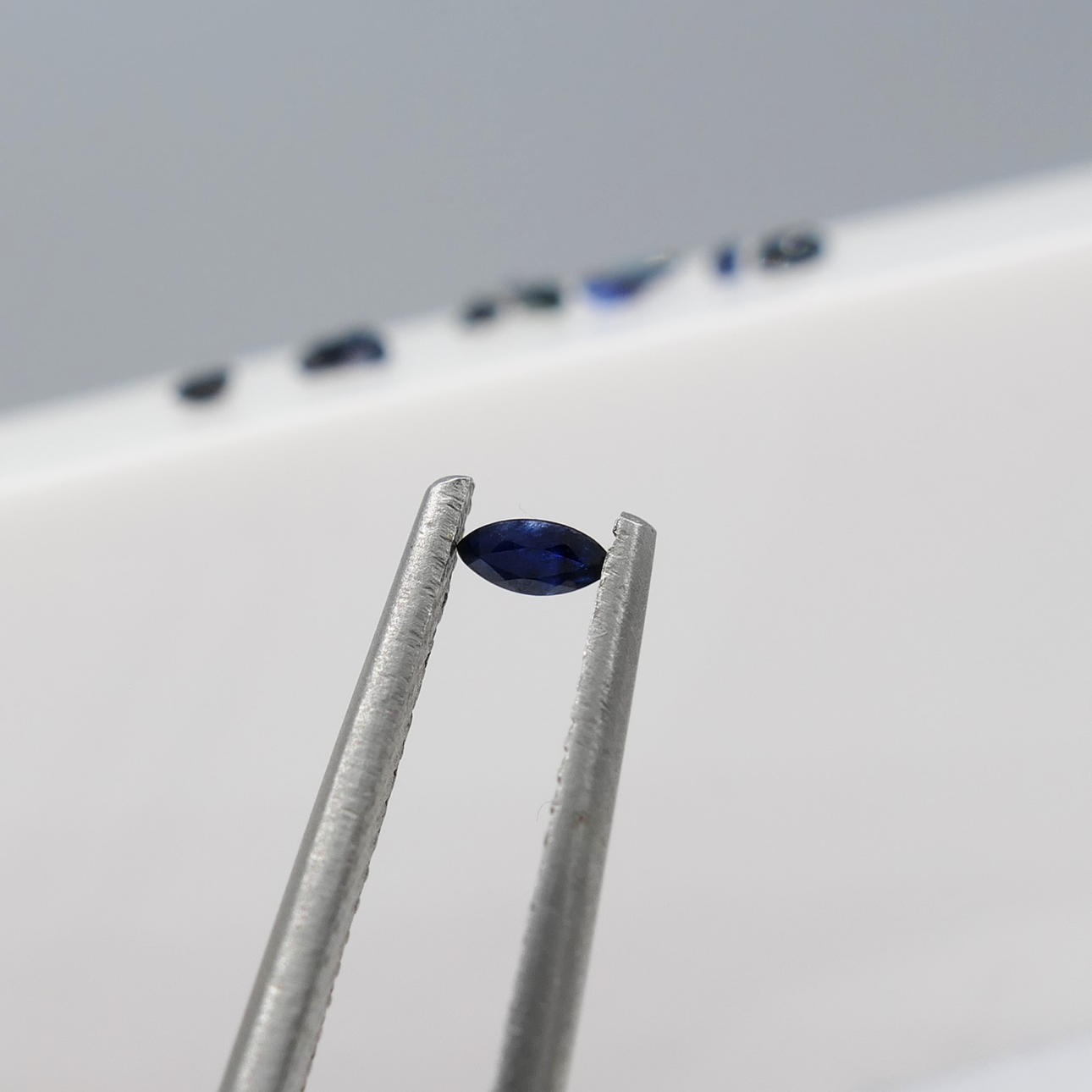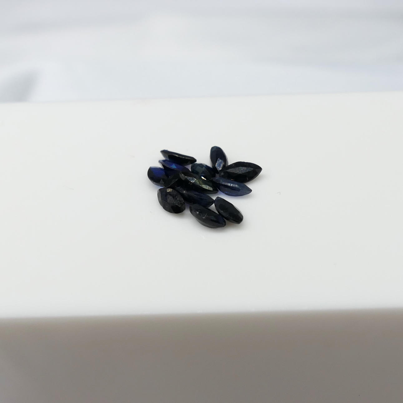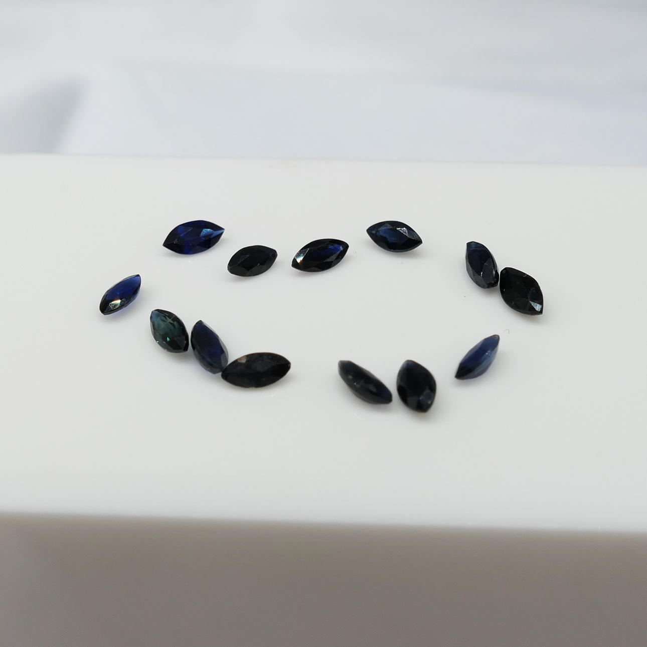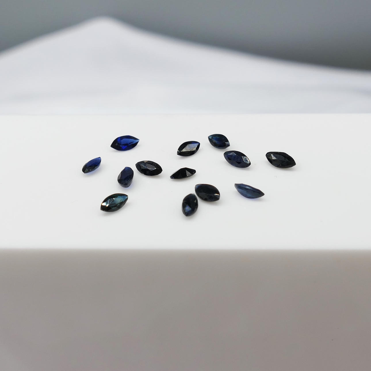 Una colección de 13 zafiros azules naturales de talla marquesa con un peso combinado en quilates de 1,18 quilates