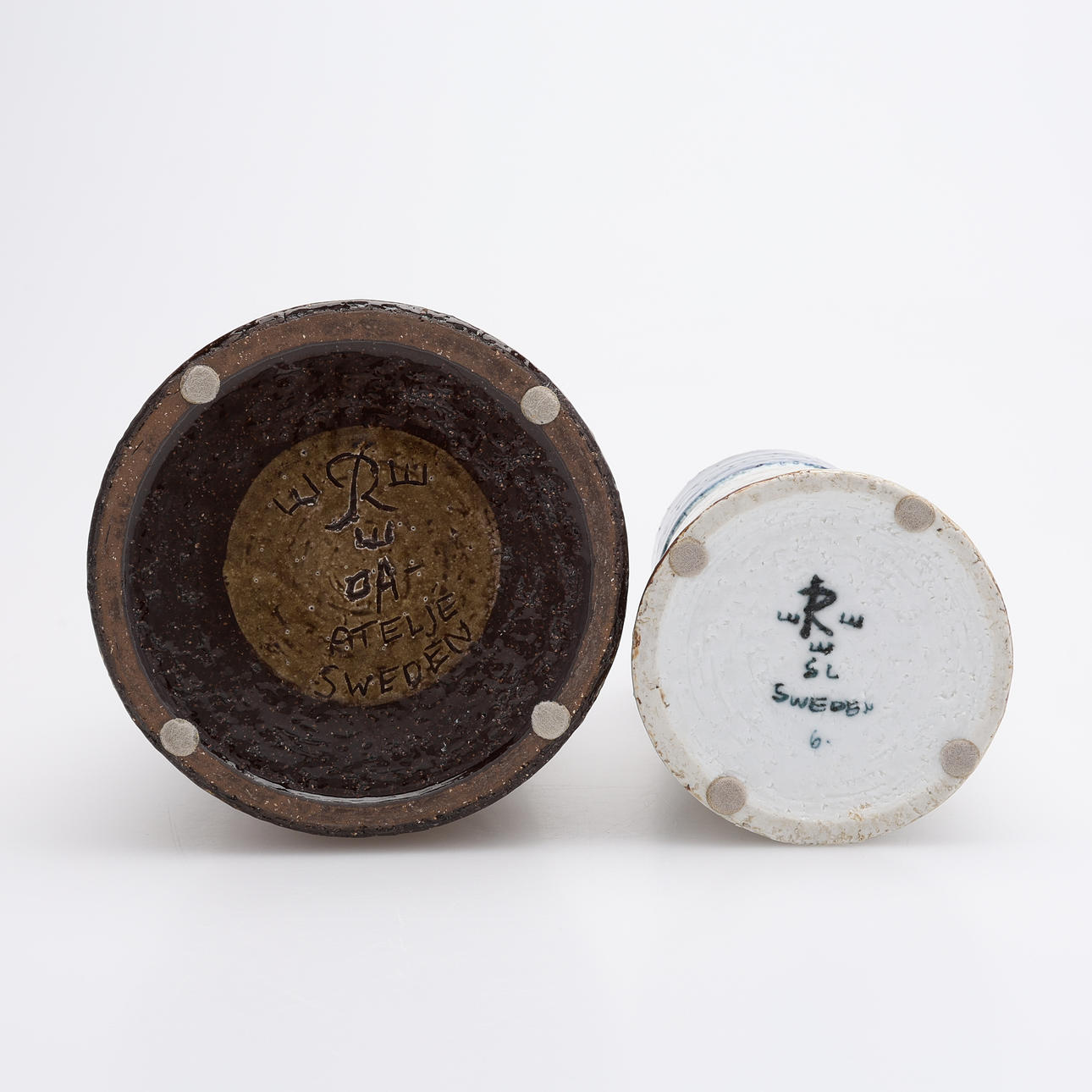Gres esmaltado, Olle Alberius, altura 15 cm. Sylvia Leuchovius, altura aprox. 16 cm.