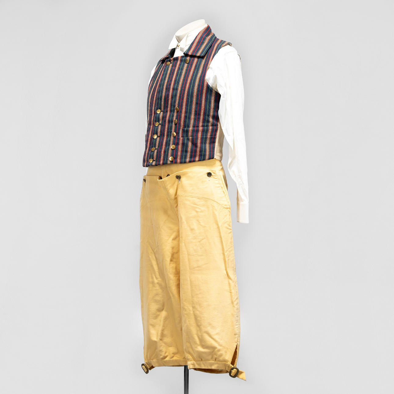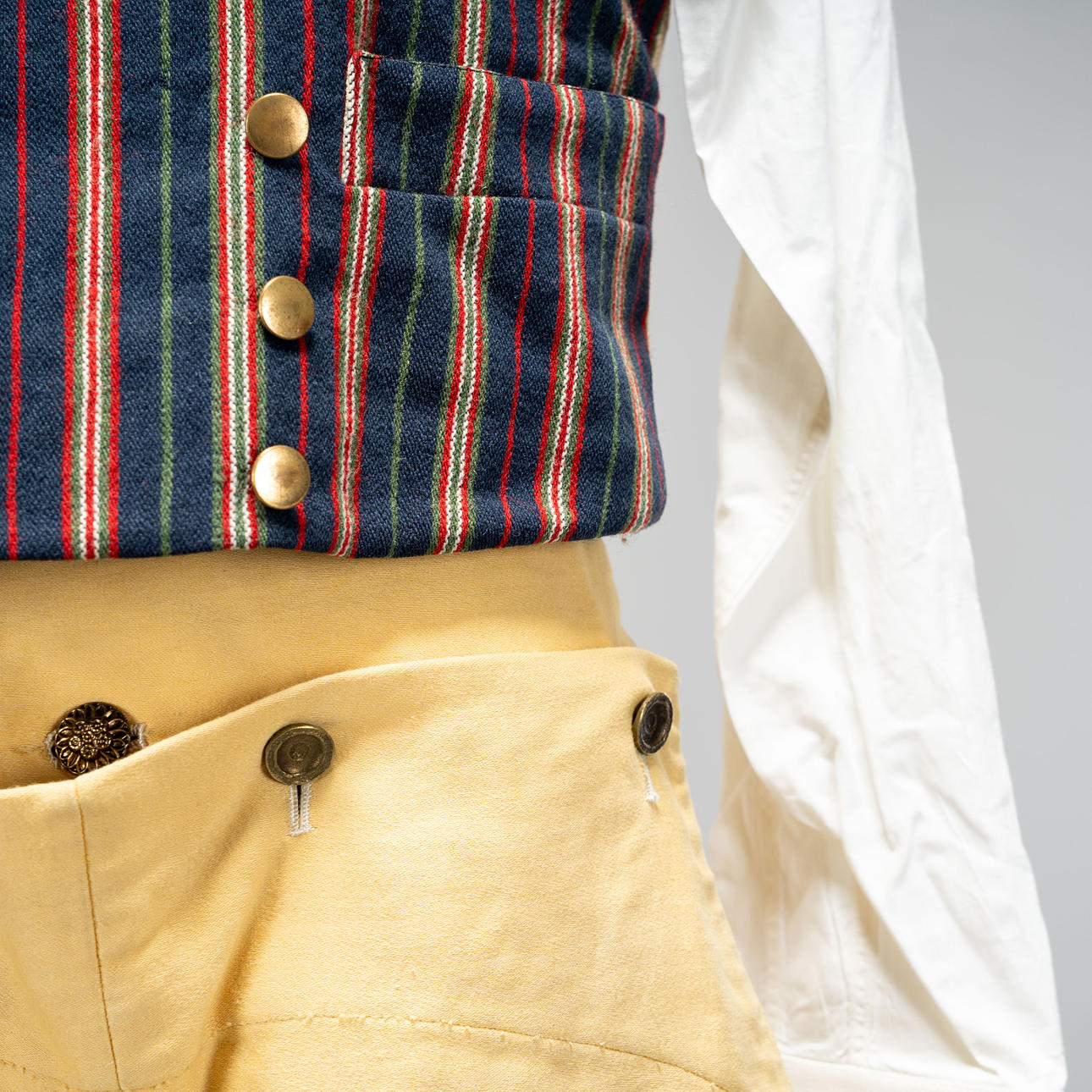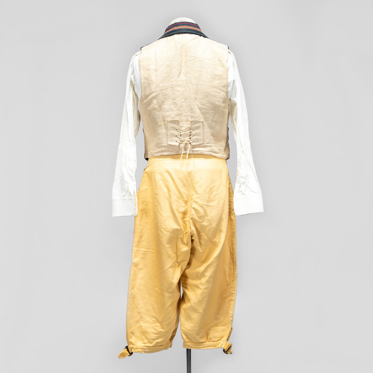 Disfraz folclórico de tres piezas con chaleco, pantalones y camisa de abrigo de algodón.
