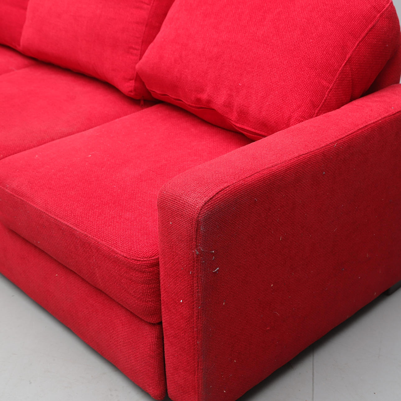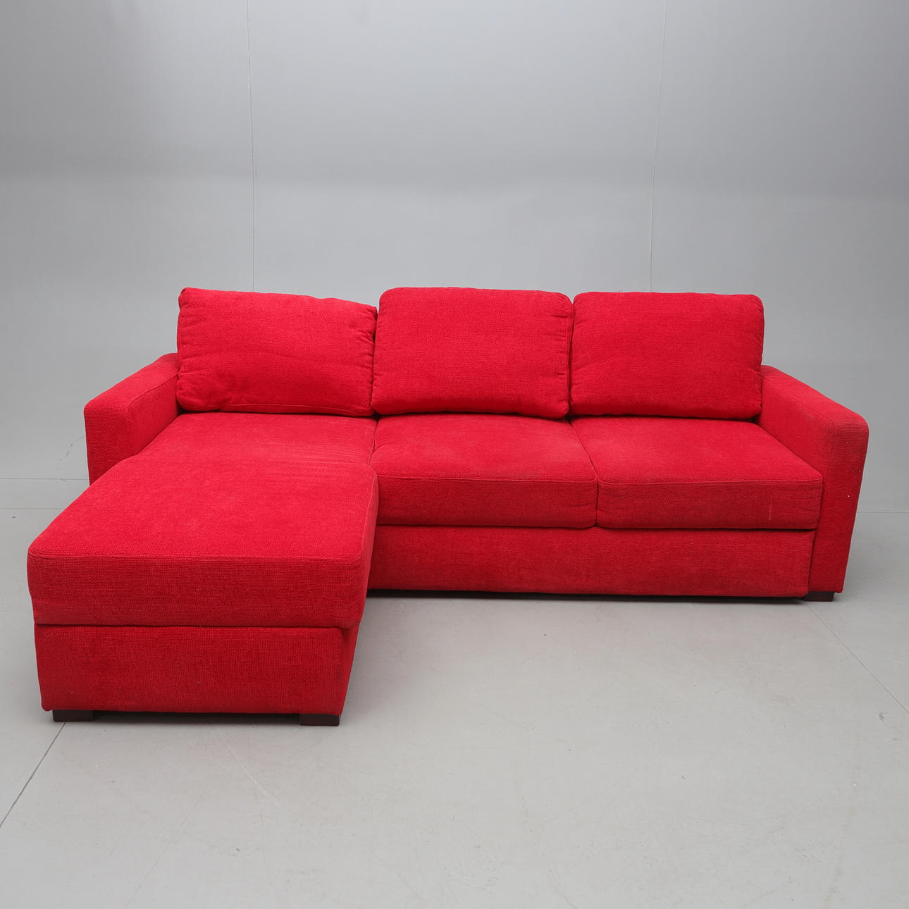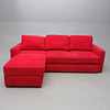 Tapicería textil. Está dividido en dos partes. Asiento con cama plegable y colchón de almacenamiento subyacente con la parte superior acolchada. Longitud ca 225 cm, ancho 155 cm, altura 71 cm.
