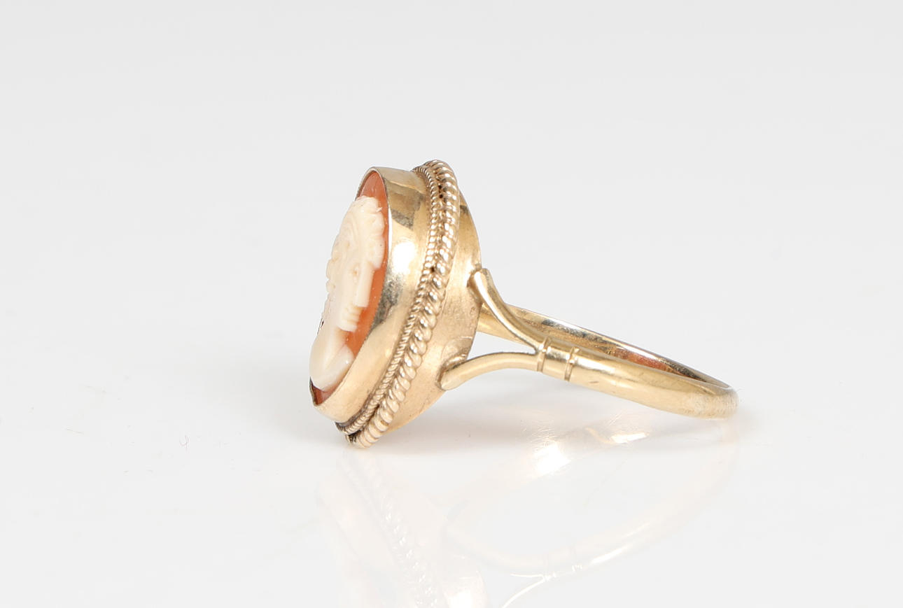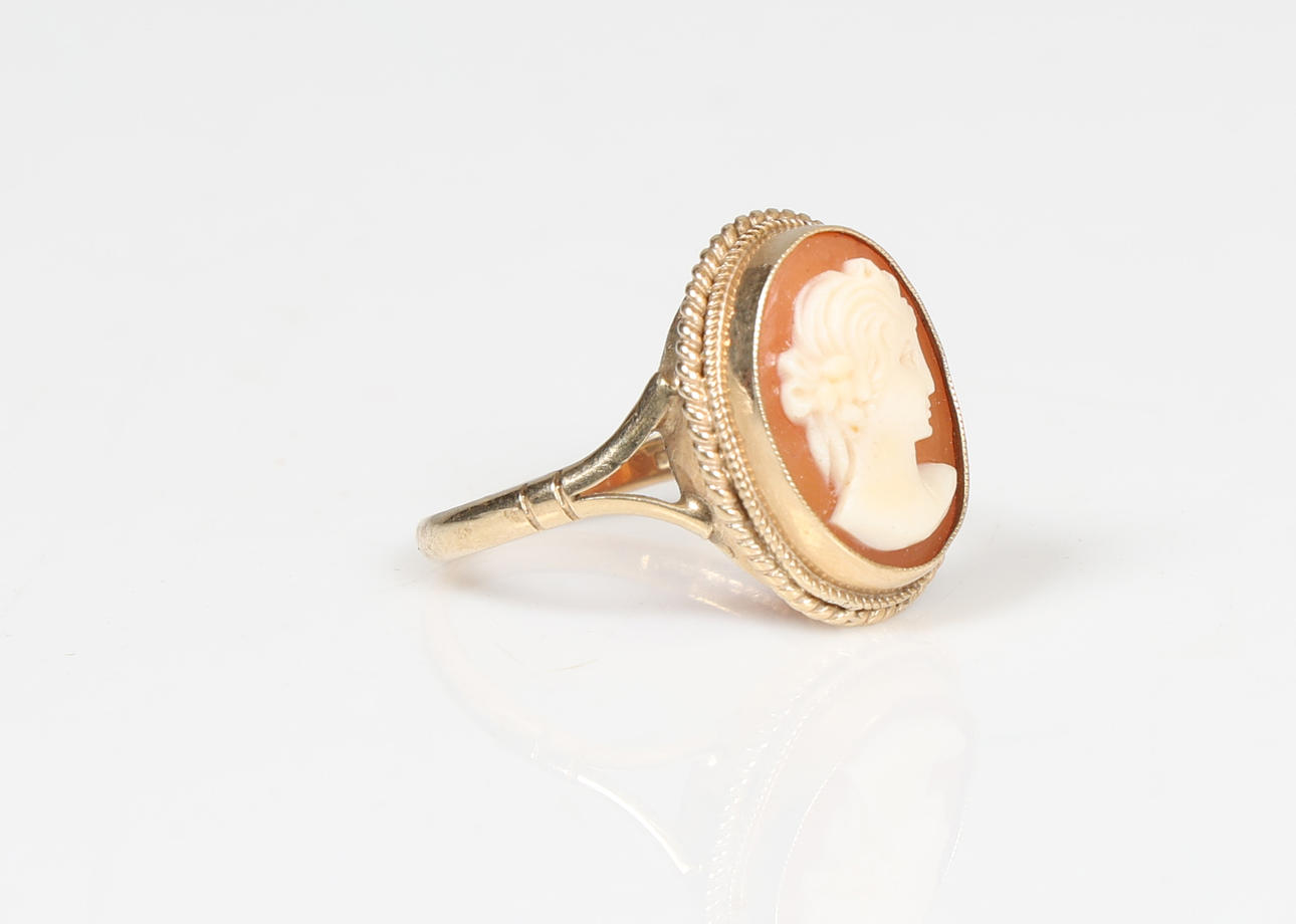 Set con un cameo de una mujer de perfil, anillo talla P, 2,7 g.