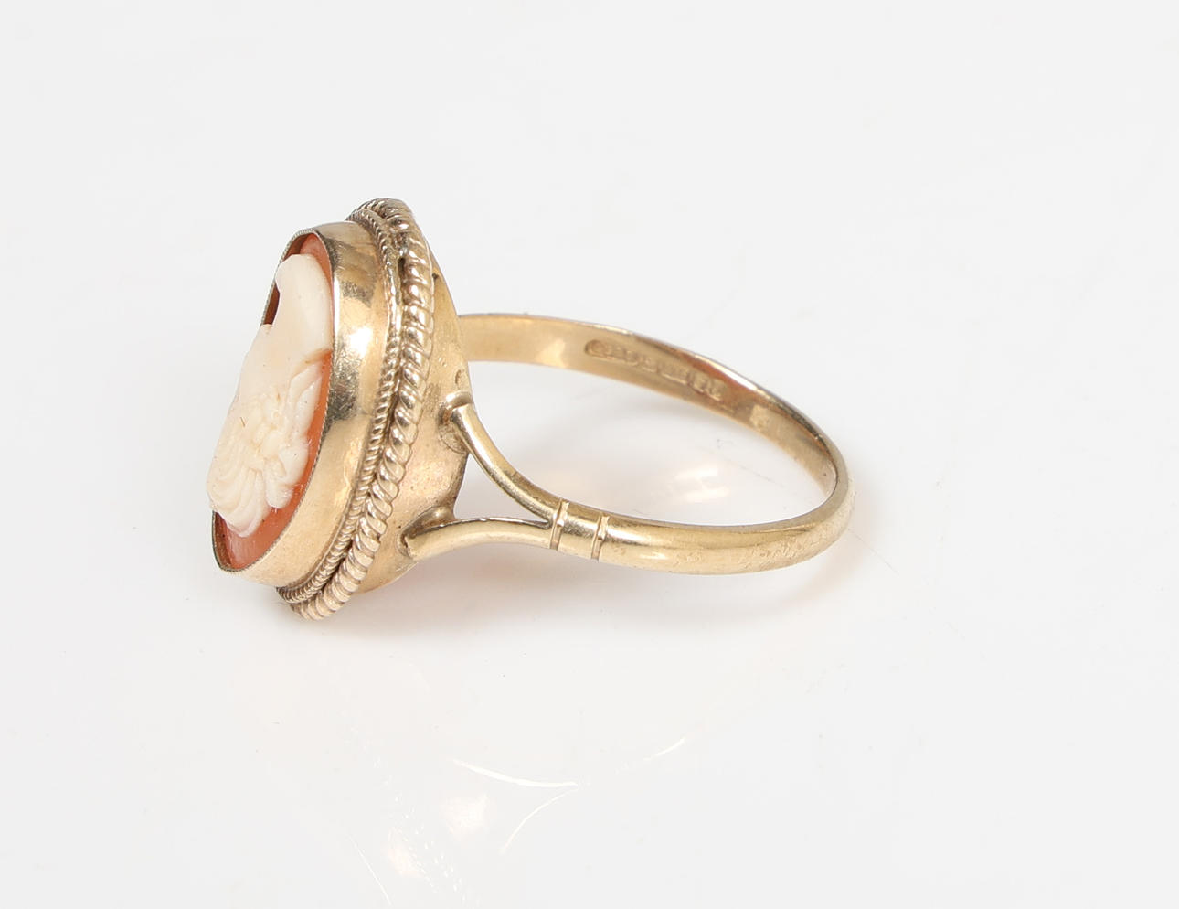 UN ANILLO CAMAFEO DE ORO DE 9 QUILATES.