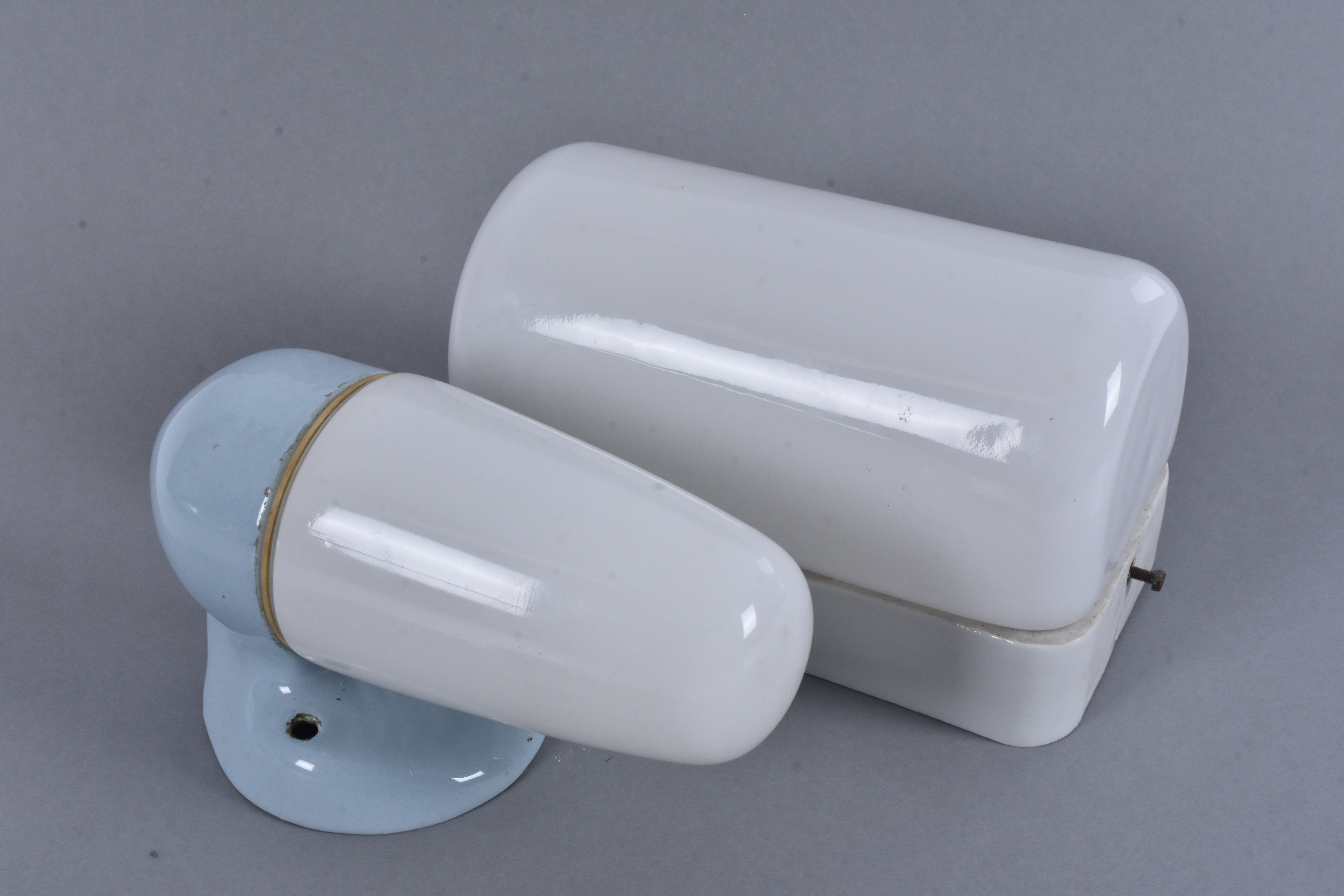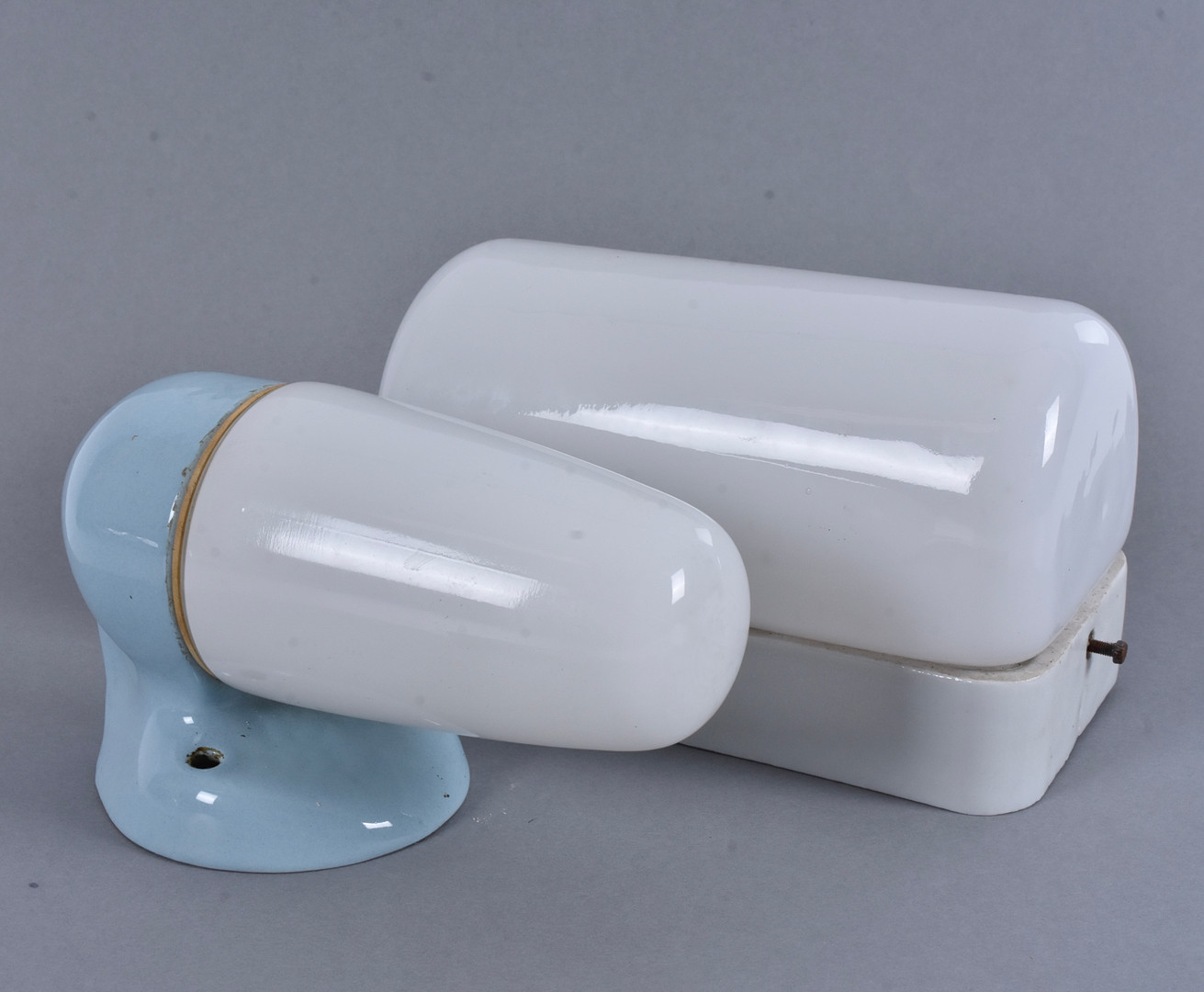 4344915. Un conjunto de dos lámparas de baño de porcelana del siglo XX.