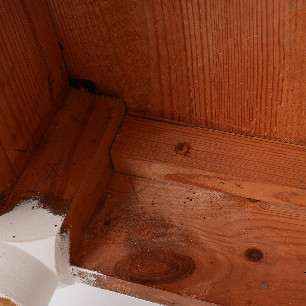 Uso y ropa relacionada con la edad. Disco con manchas y grietas relacionadas con la edad. Pintura posterior. Parte inferior ligeramente picada por gusanos.