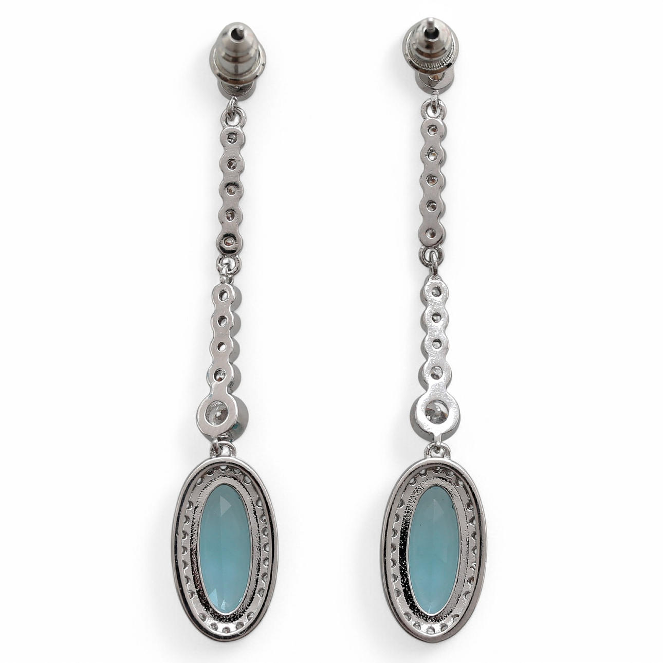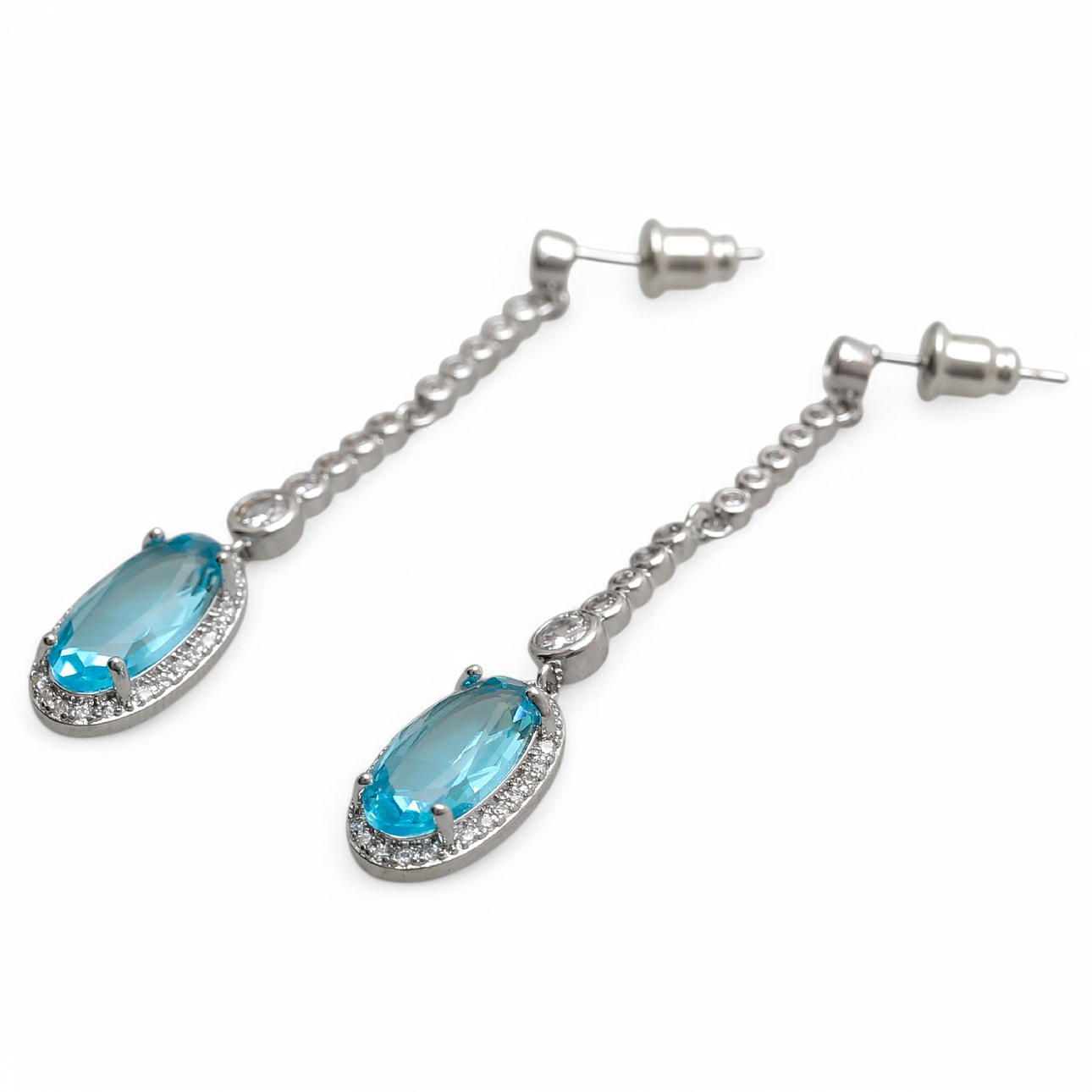 Metal plateado y circonitas azules e incoloras. 5,32 cm. 5,5 gr.