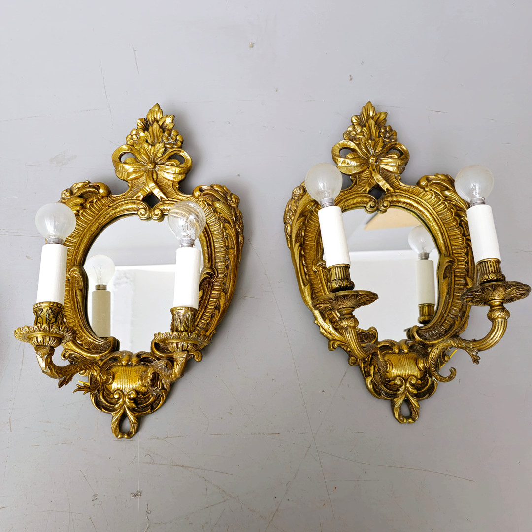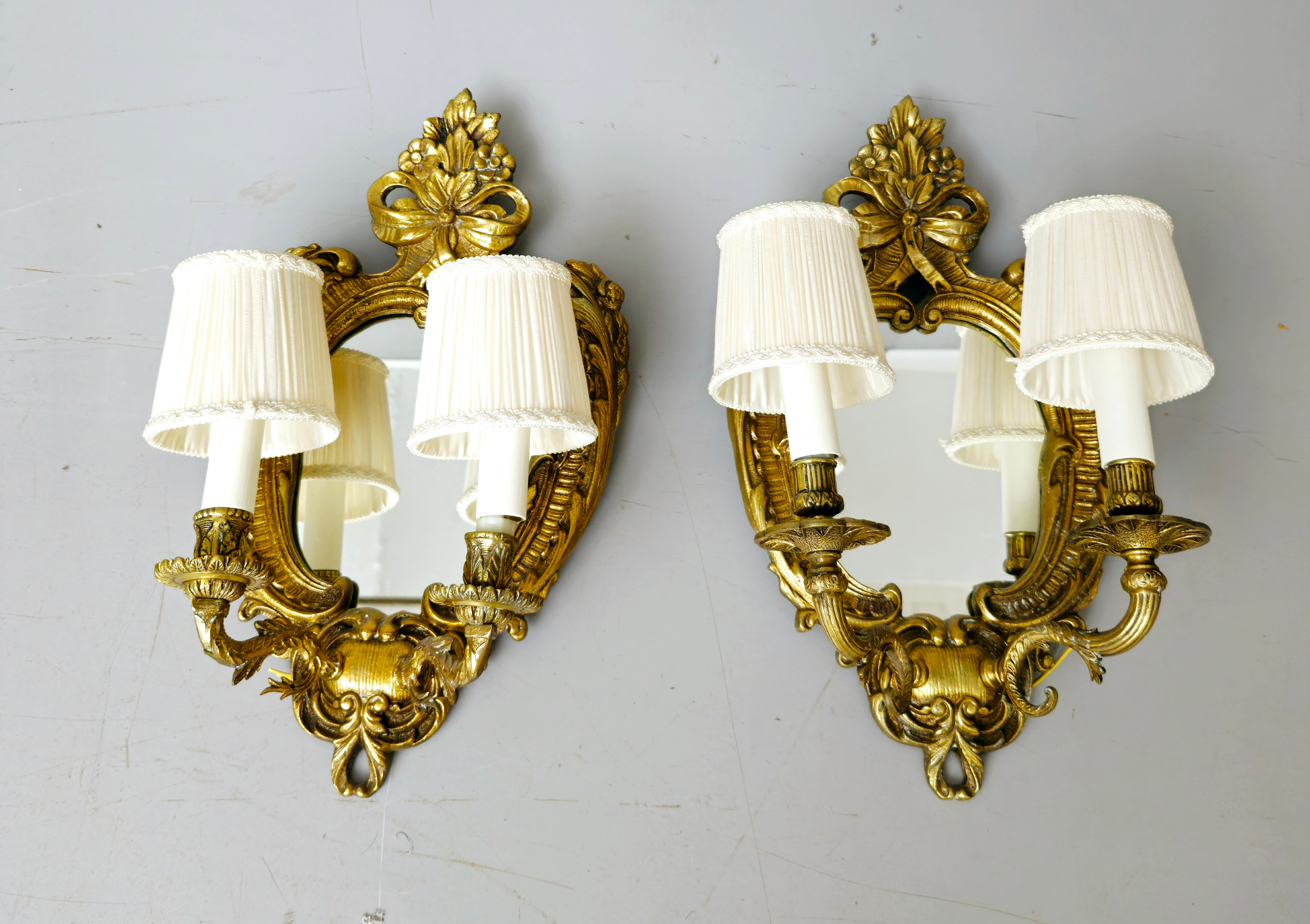 4353495. PAR DE APLIQUES CORNUCOPIA. BRONCE. SIGLO XX.
