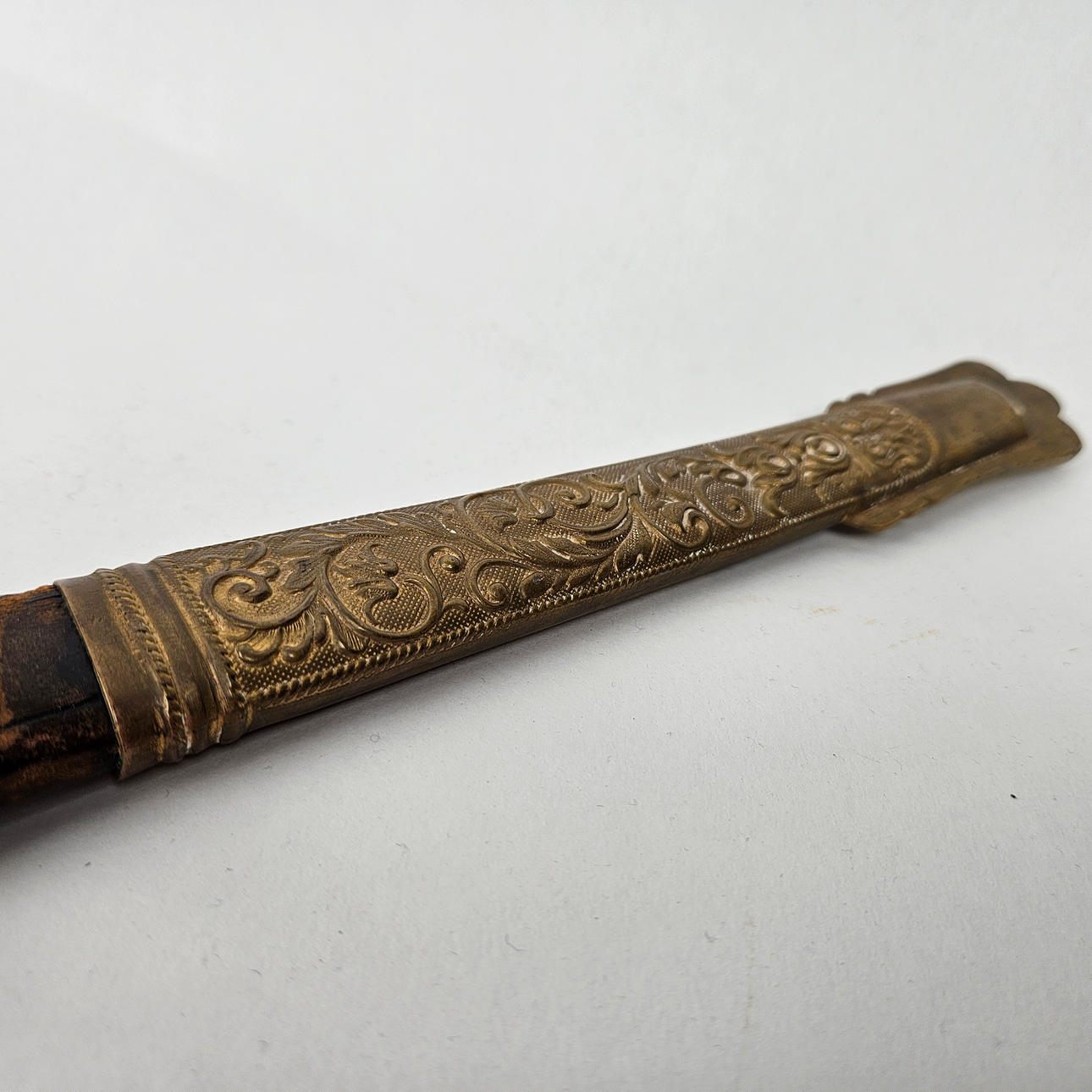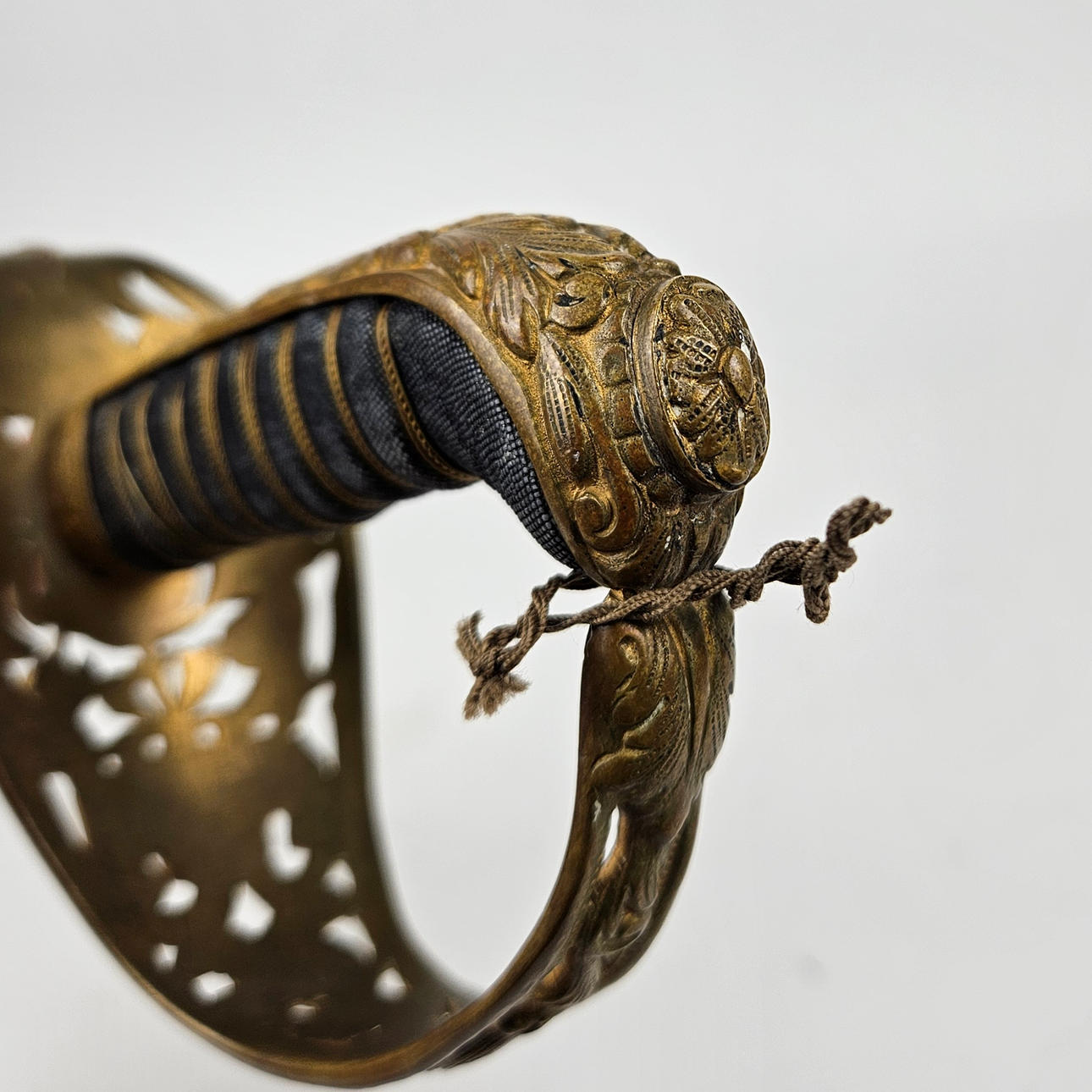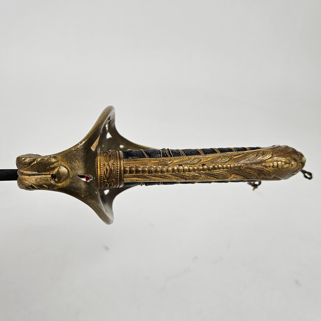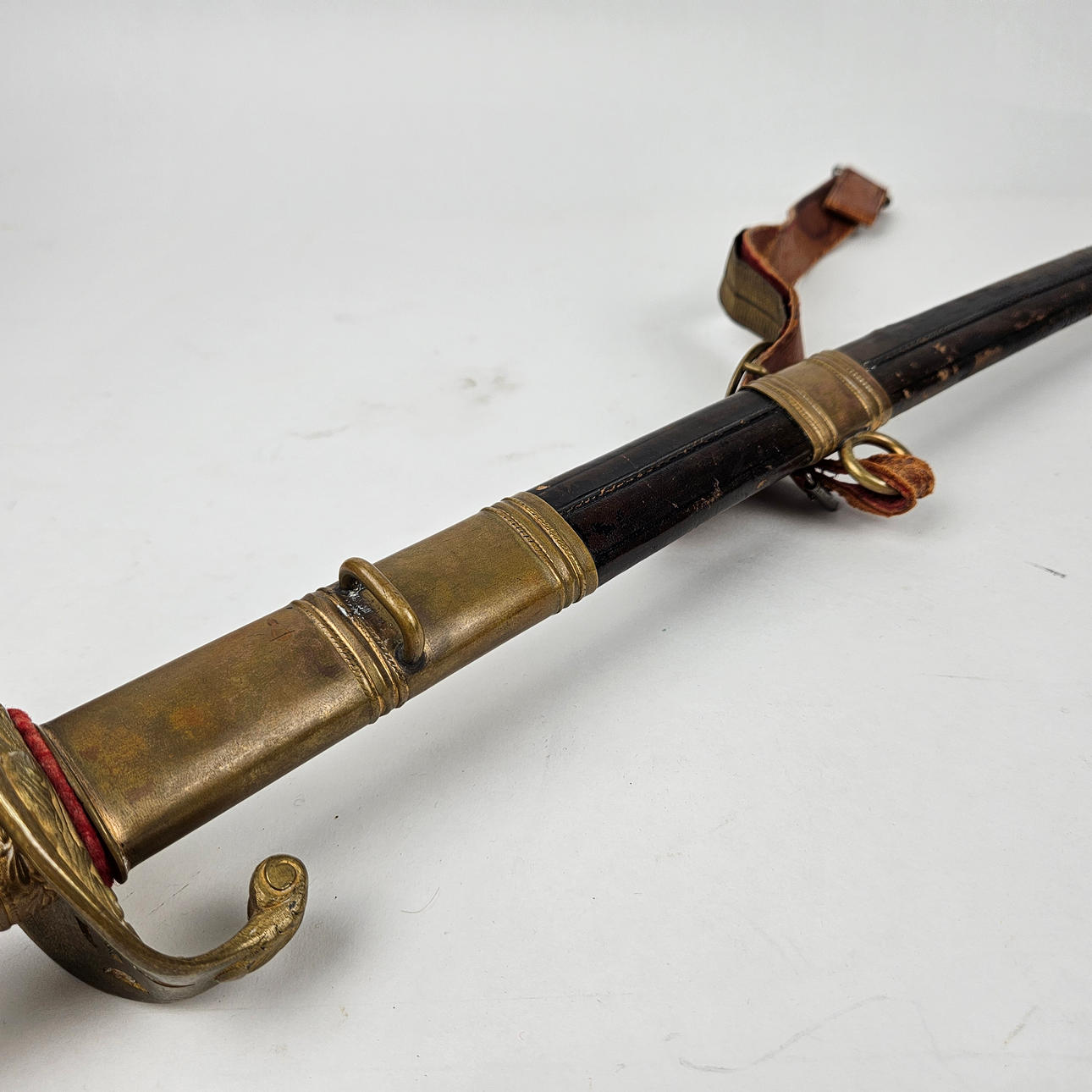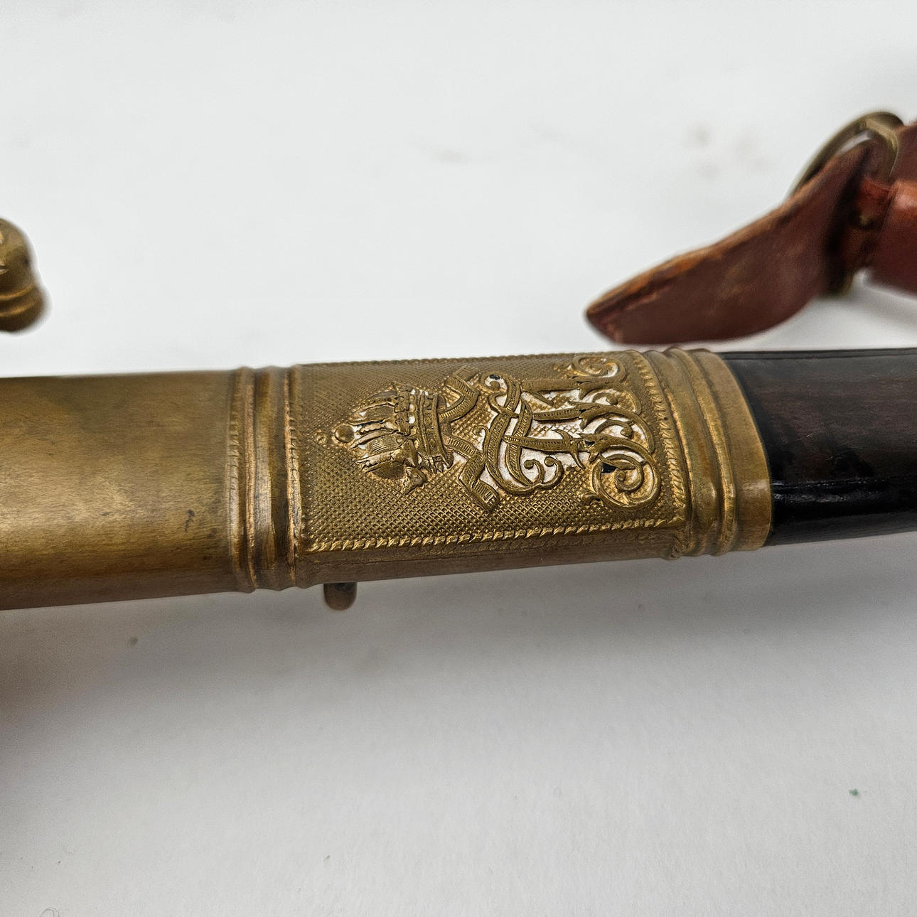 Soporte de latón Longitud: aprox. 92 cm. Hoja marcada como Solingen, longitud aproximada 78,5 cm. Balja con monograma de Francisco José I.