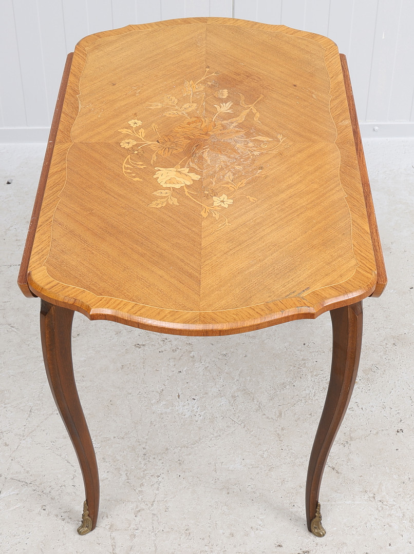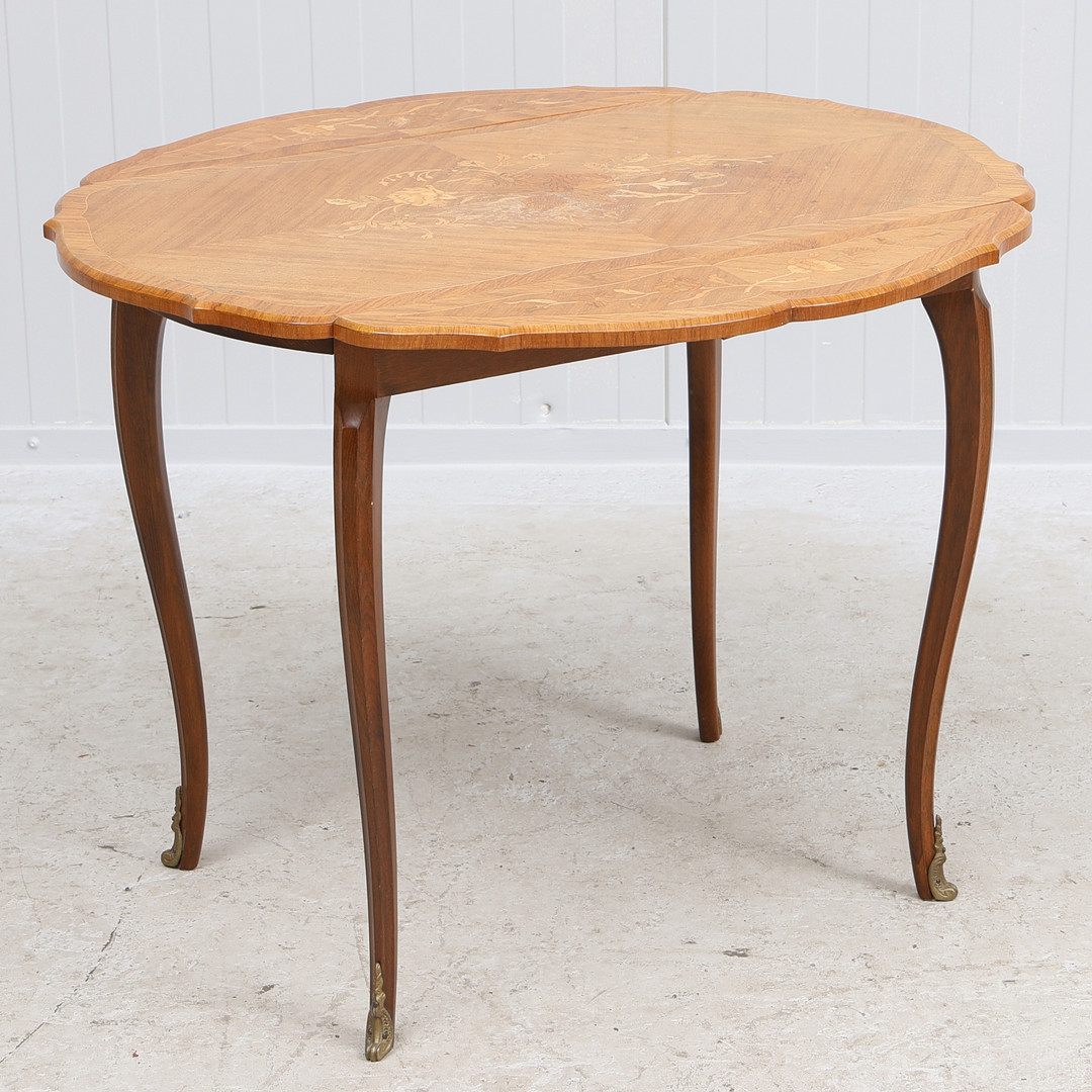4360247. Mesa plegable Intarsia rococó del siglo XX.