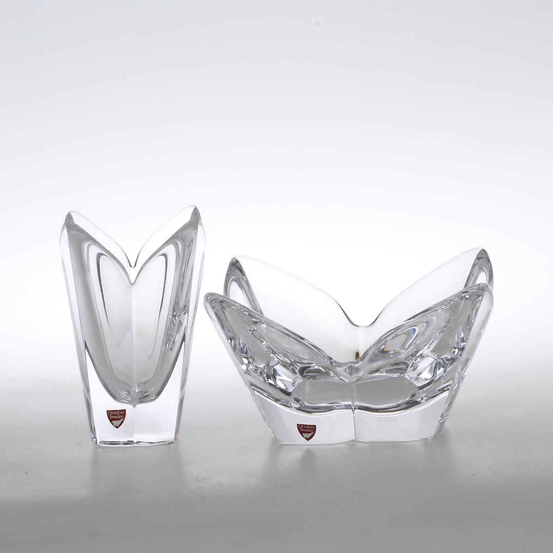 436384. JARRON y CUENCO, vidrio, Lars Hellsten, Orrefors.