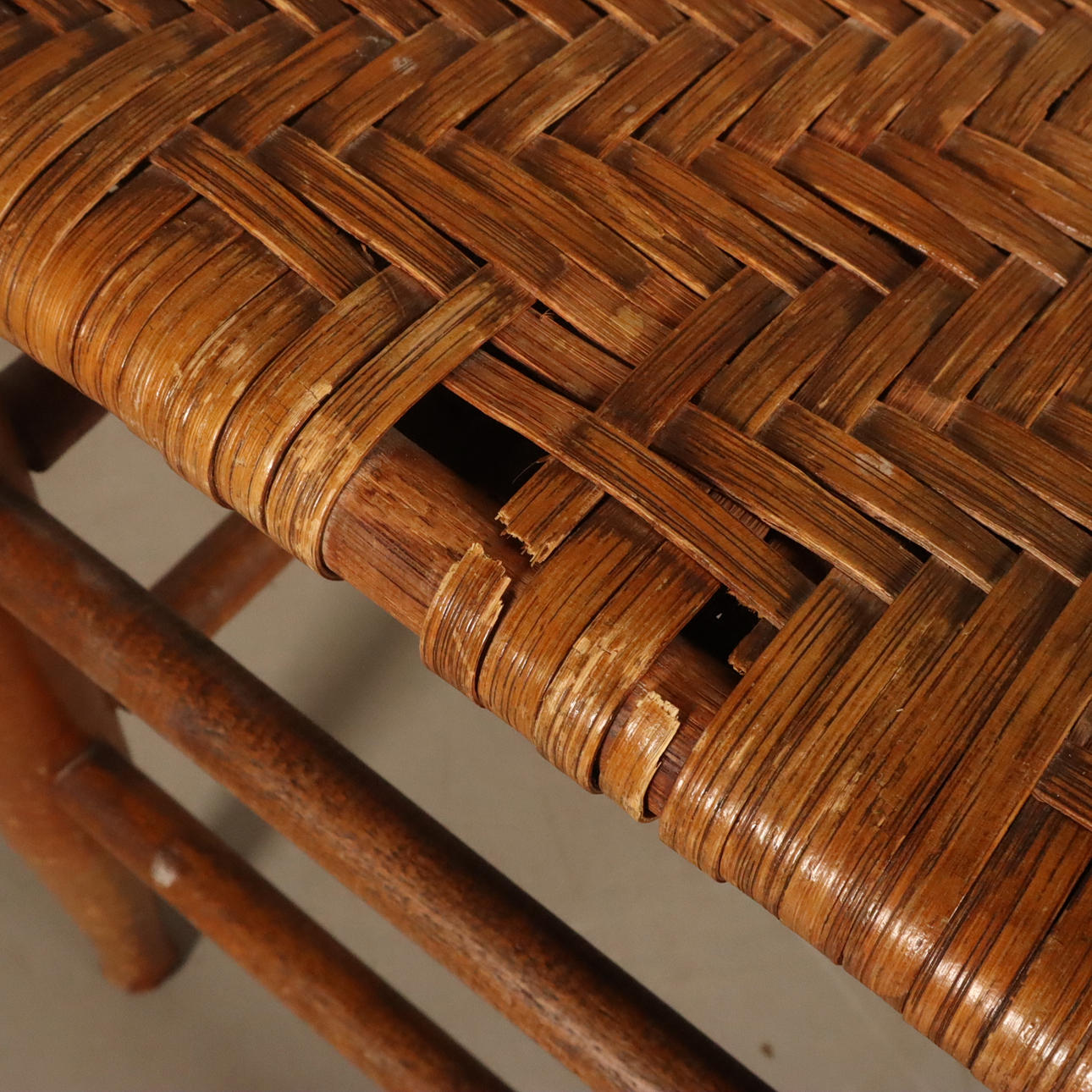 4366969. REPOSAPIÉS de madera con asiento de mimbre.