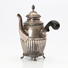 4370150. JACOB ENGELBERT COD, CAFETERA. Plateado con mango de madera ennegrecido. Estocolmo, 1910. Peso total de unos 560 gramos.