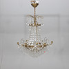 Estructura de latón. Con bisagras y prismas. Seis portavelas, seis puntos de luz eléctrica. Diámetro ca 56, altura 65 cm.
