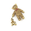 Un broche engastado con piedras de metal dorado junto con un broche dorado articulado con forma de osito de peluche, de 3,7 y 4,2 cm.