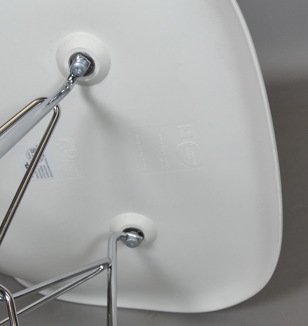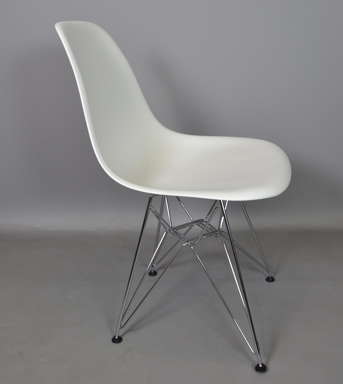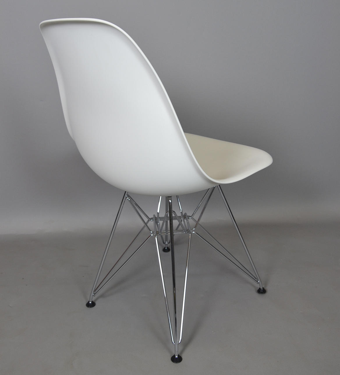Diseño Charles & Ray Eames de 1950, fabricante Vitra, versión 2013, modelo DSR, estructura de metal cromado, carcasa del asiento de plástico.