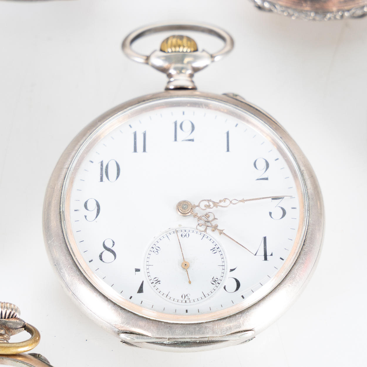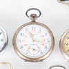 4374419. 8 relojes de bolsillo, plata y níquel.