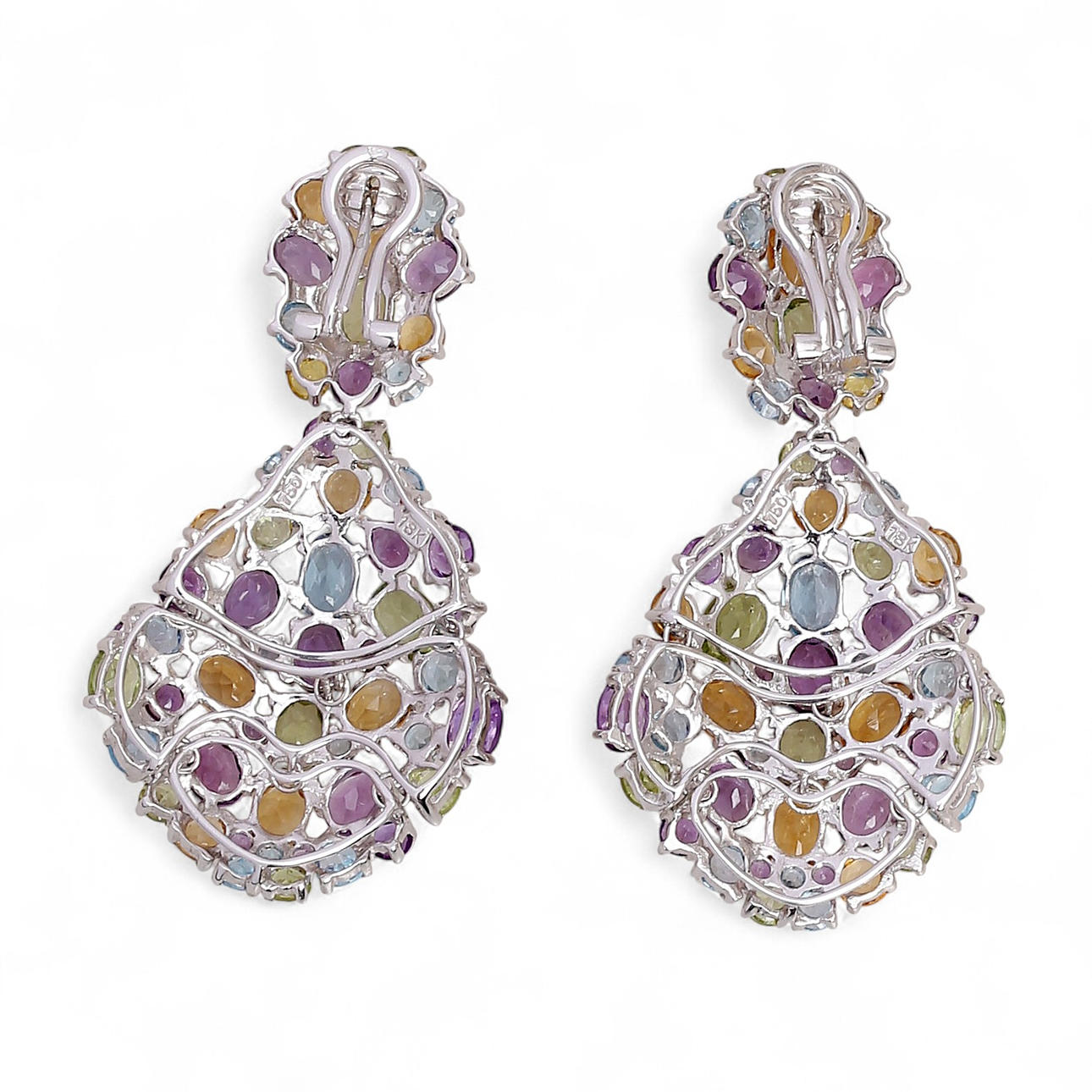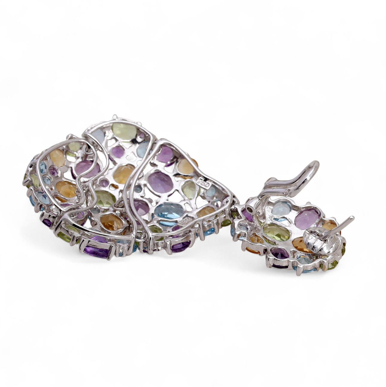 Oro blanco de 18K, amatistas, citrinos, peridotos y topacios tallas redonda y oval, 23 cts aprox. 5,2 cm. 19,5 gr.