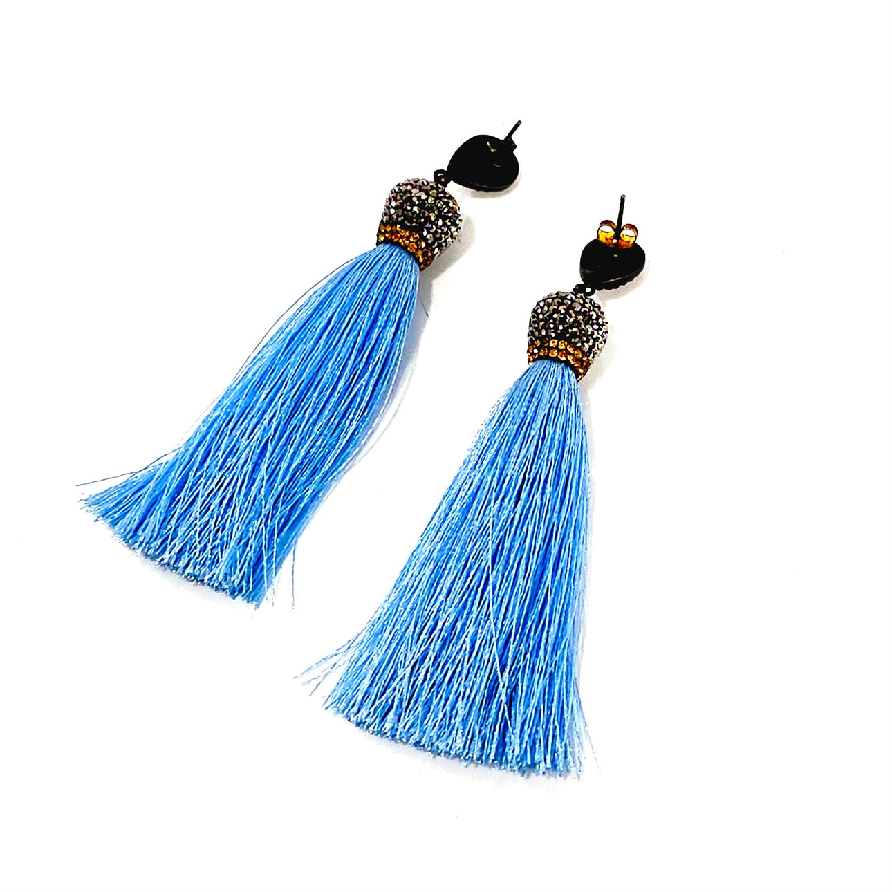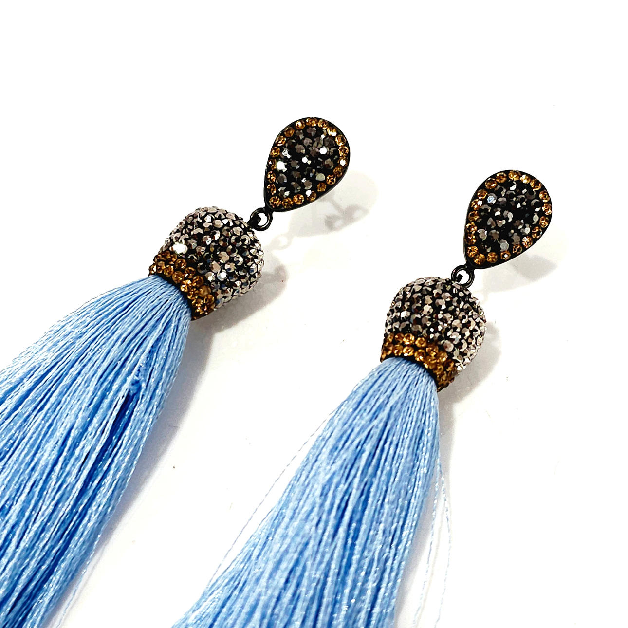 4375705. Pendientes largos de marquesitas en plata y borla azul.