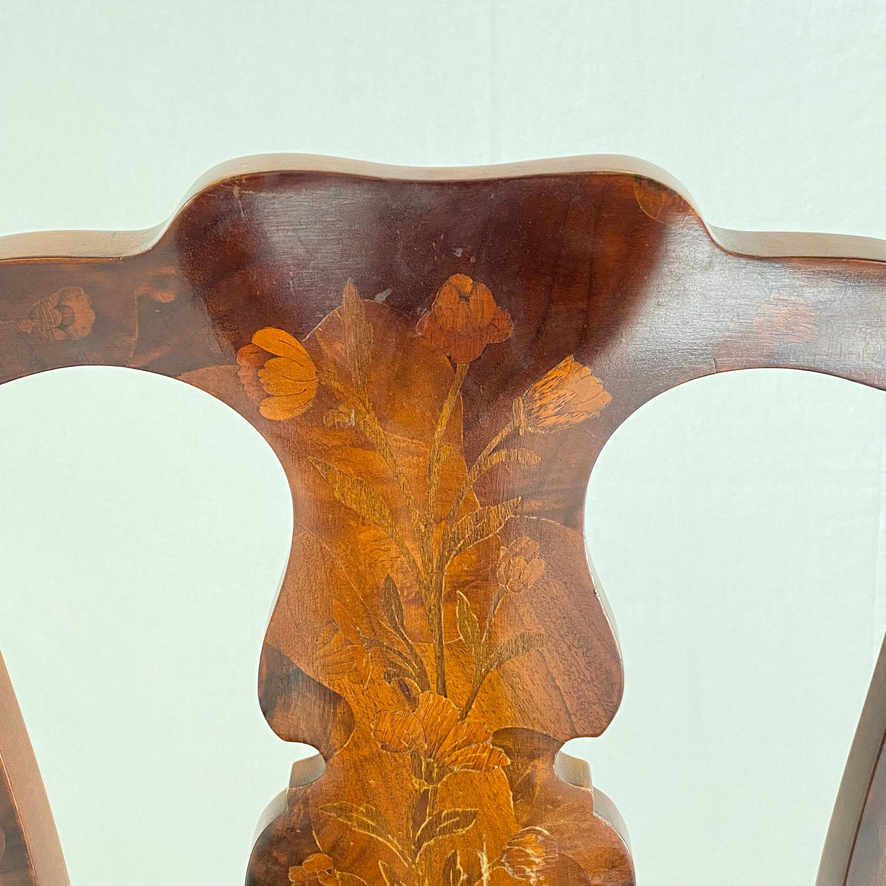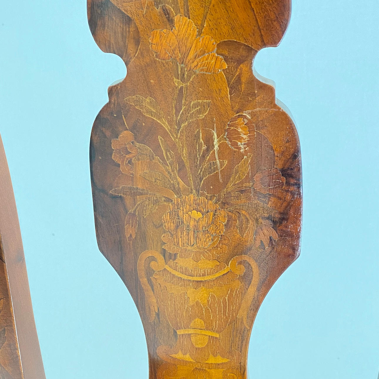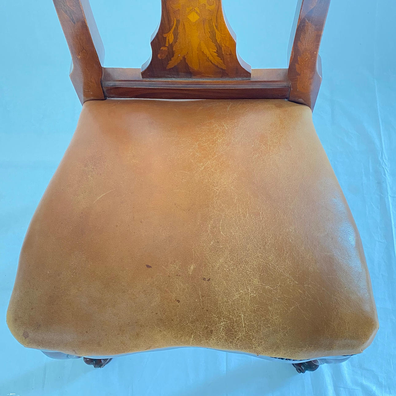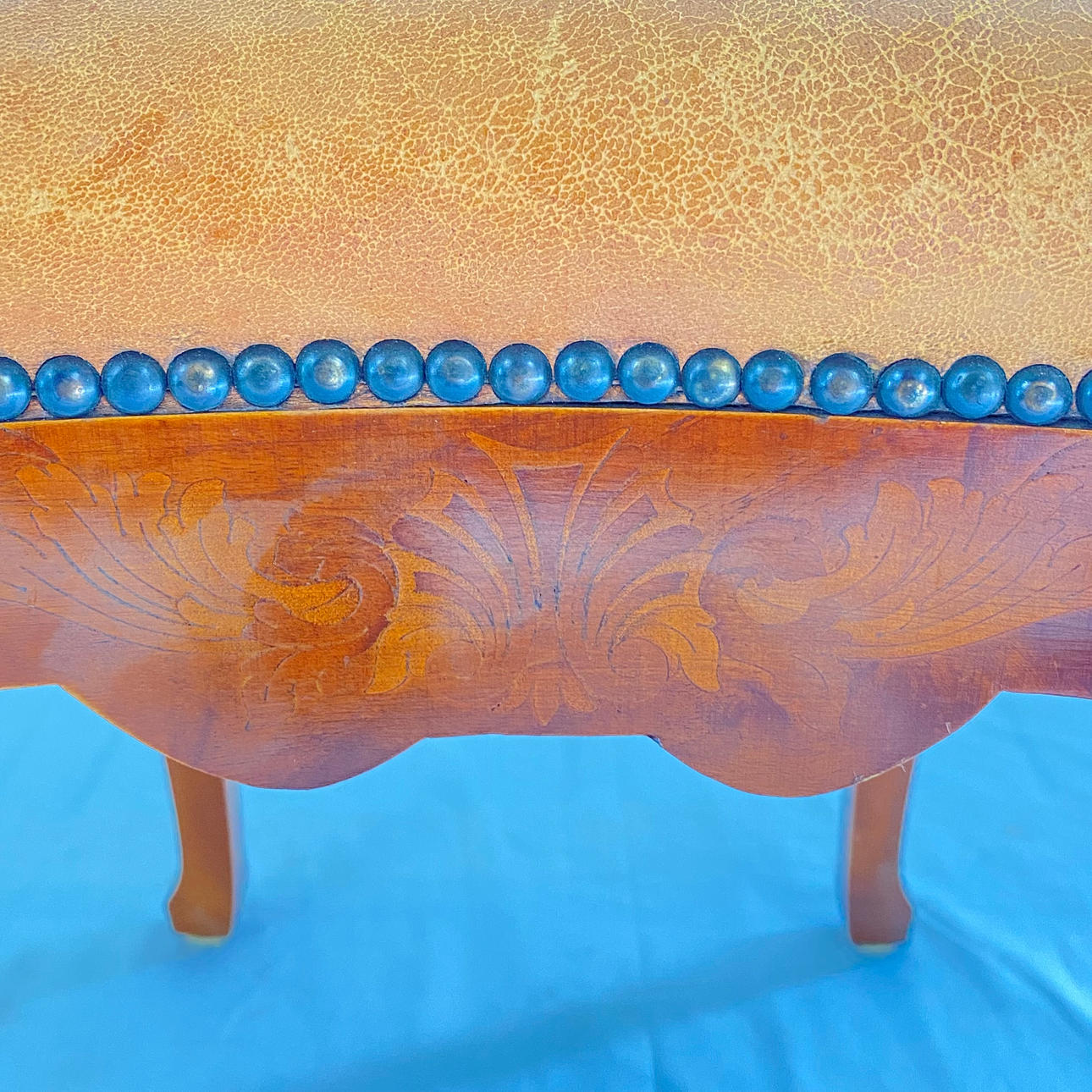 incrustaciones florales, asiento con funda de piel, altura aprox. 108,5 cm, altura del asiento aprox. 48 cm.