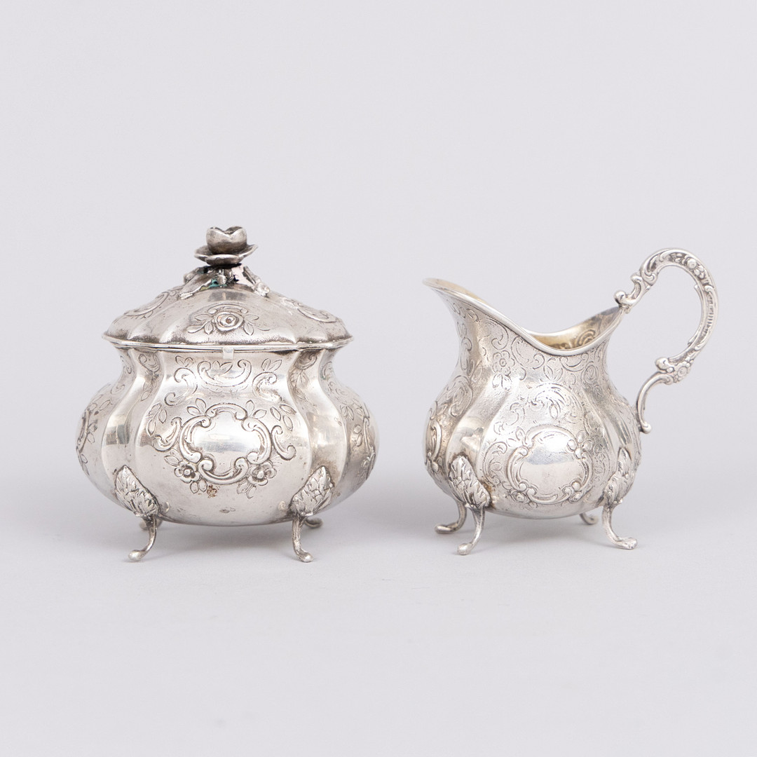 4377605. AZUCARERO Y JARRA DE CREMA, PLATEADA.