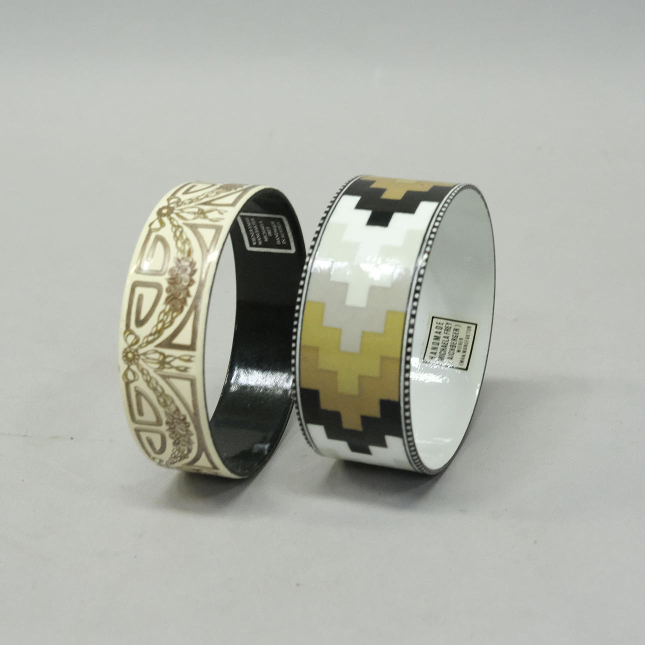 Decoración esmaltada. Diámetro 6,3 y 6,4 cm. Ancho 1,9 y 2,5 cm.