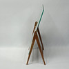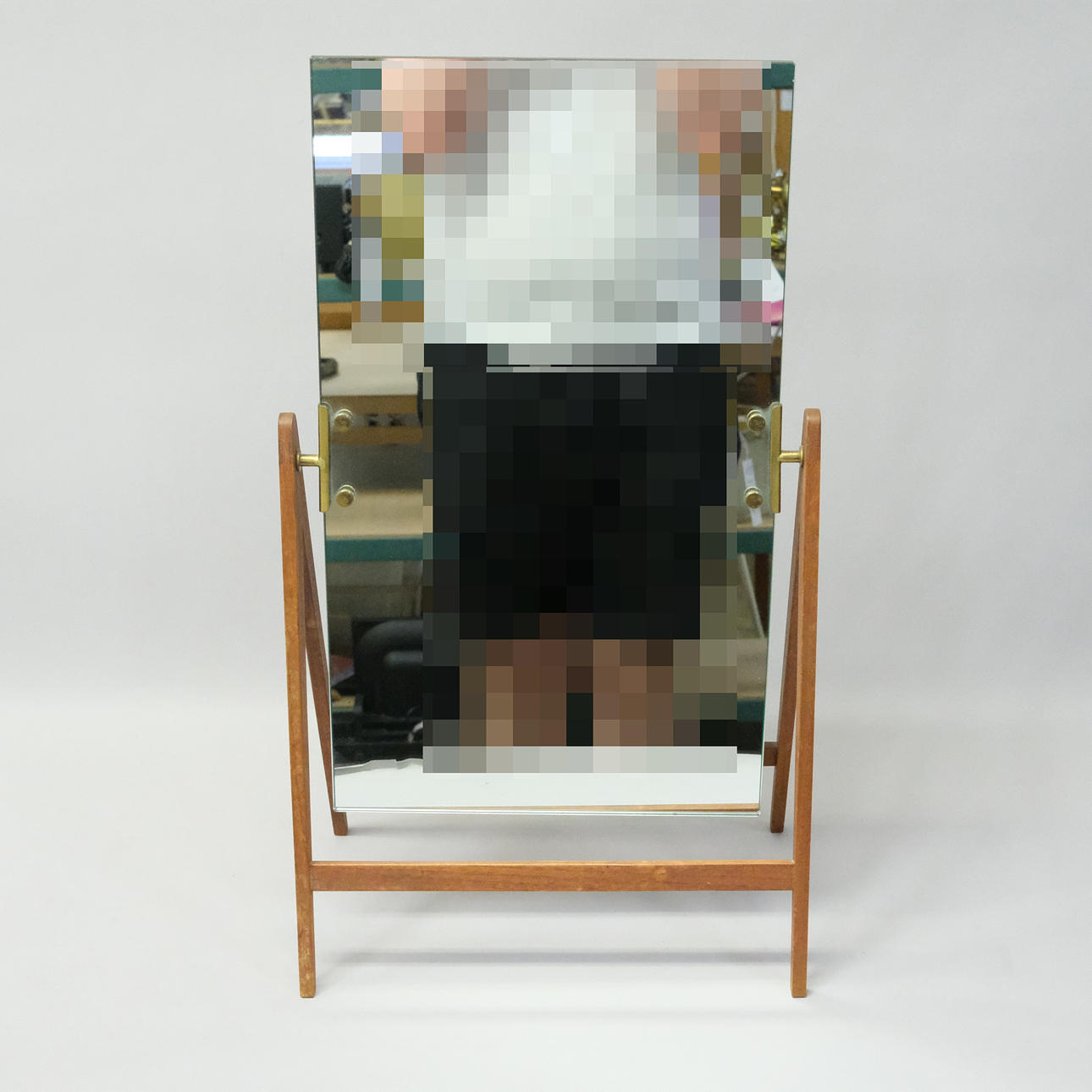 Marco de teca con espejo ajustable montado con herrajes de latón, altura 60, ancho 34 y profundidad 20 cm, espejo 50x28 cm.