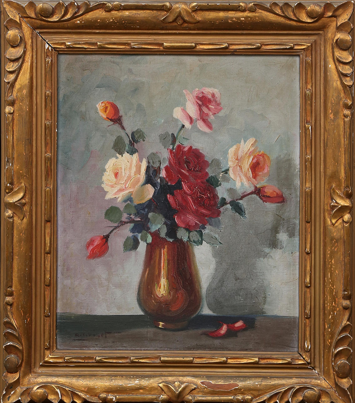 Craquelado marcado. Leves faltas en la capa pictórica. Marco de madera en estuco moldurado y dorado, con faltas.